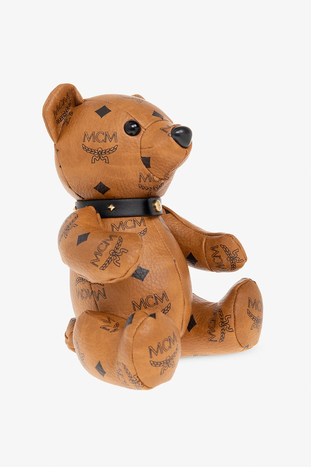 Brown and black teddy bear doll from MCM. Crafted from faux-leather with the brand's signature 'Visetos' pattern, this item comes with a detachable black collar punctuated with studs.