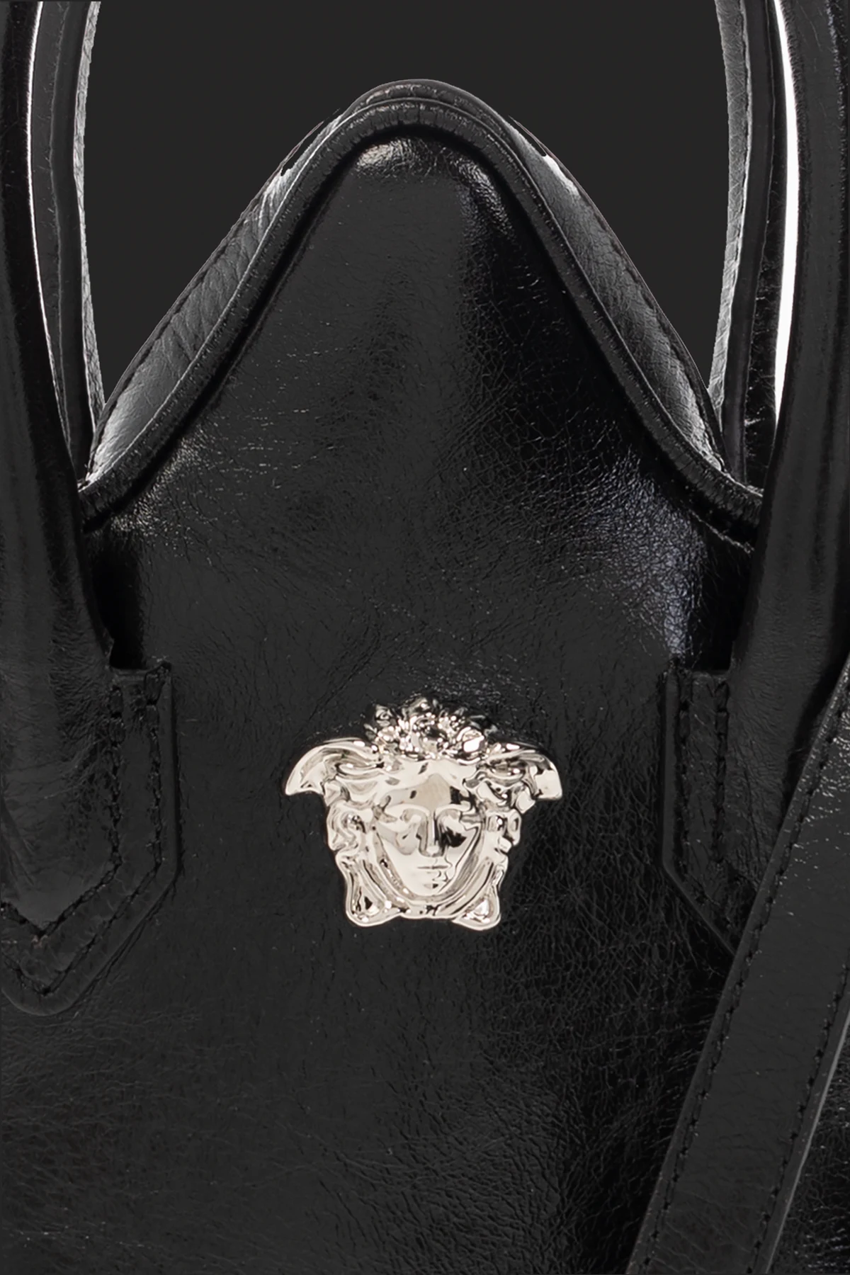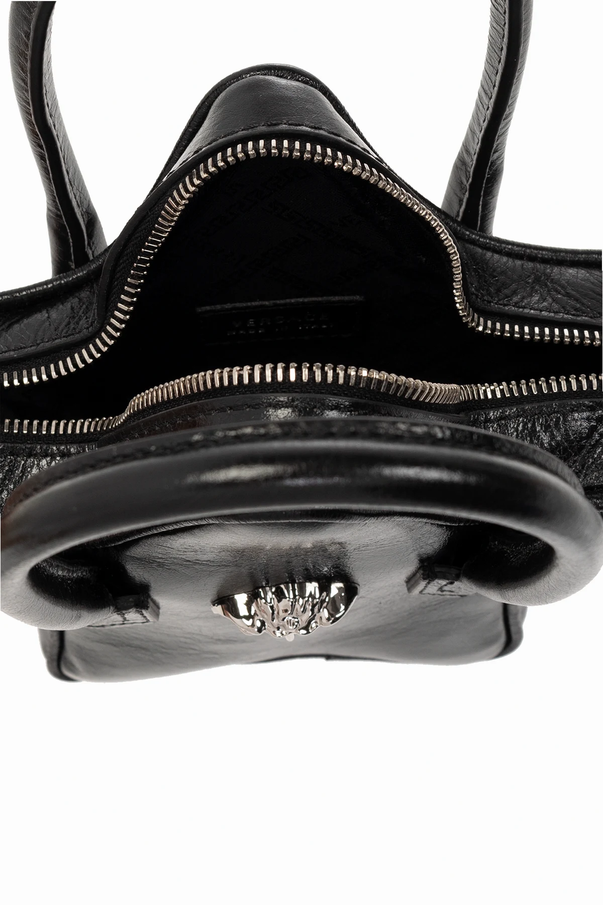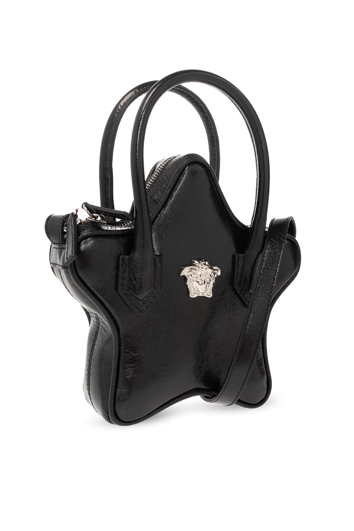 Black ’La Medusa Star’ shoulder bag from Versace Kids. Made from textured calf leather, this design secures with a two-way zip and showcases the brand's signature Medusa face on the front. It is complete with a long shoulder strap, two half-round handles, silver-tone metal hardware and one internal compartment.