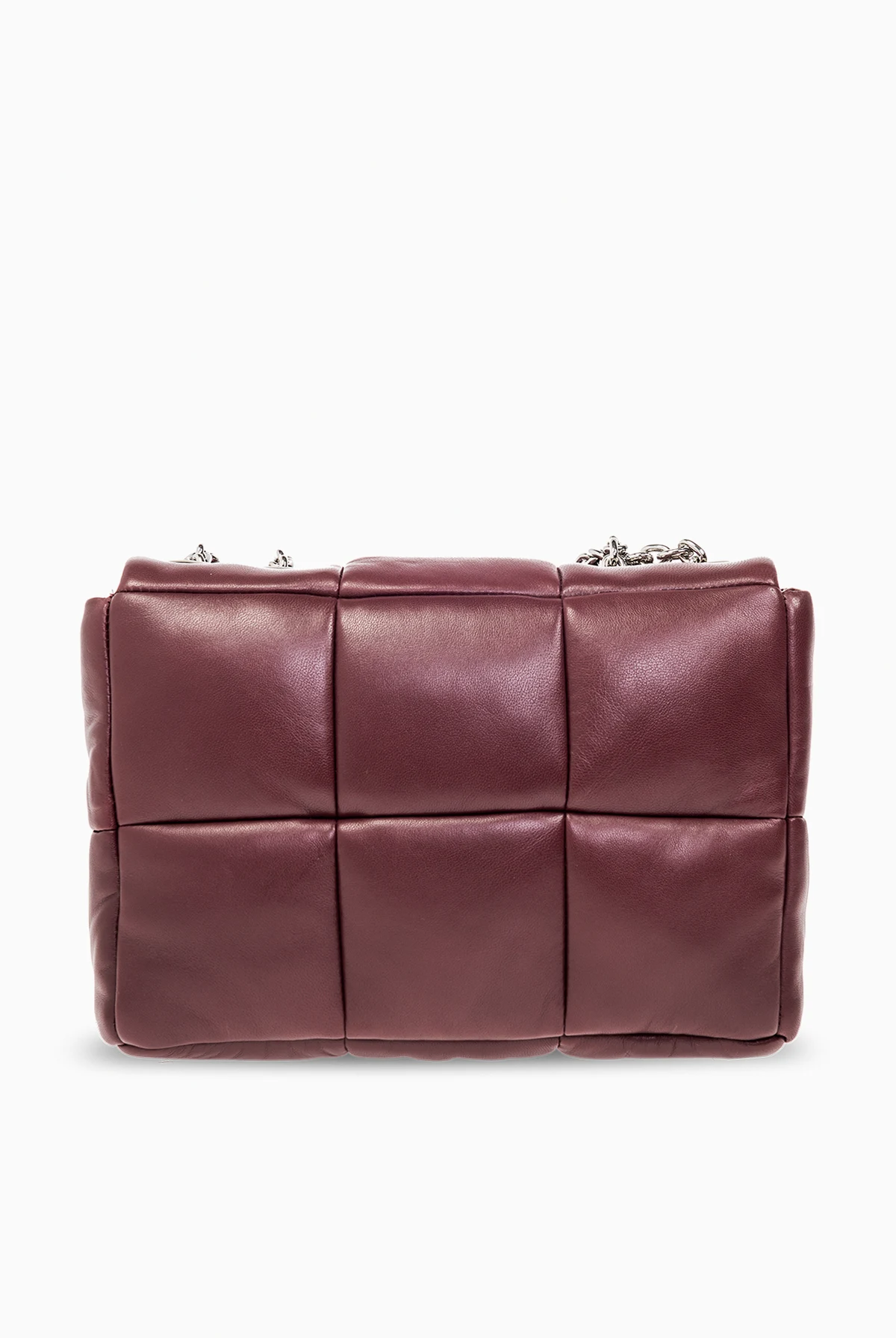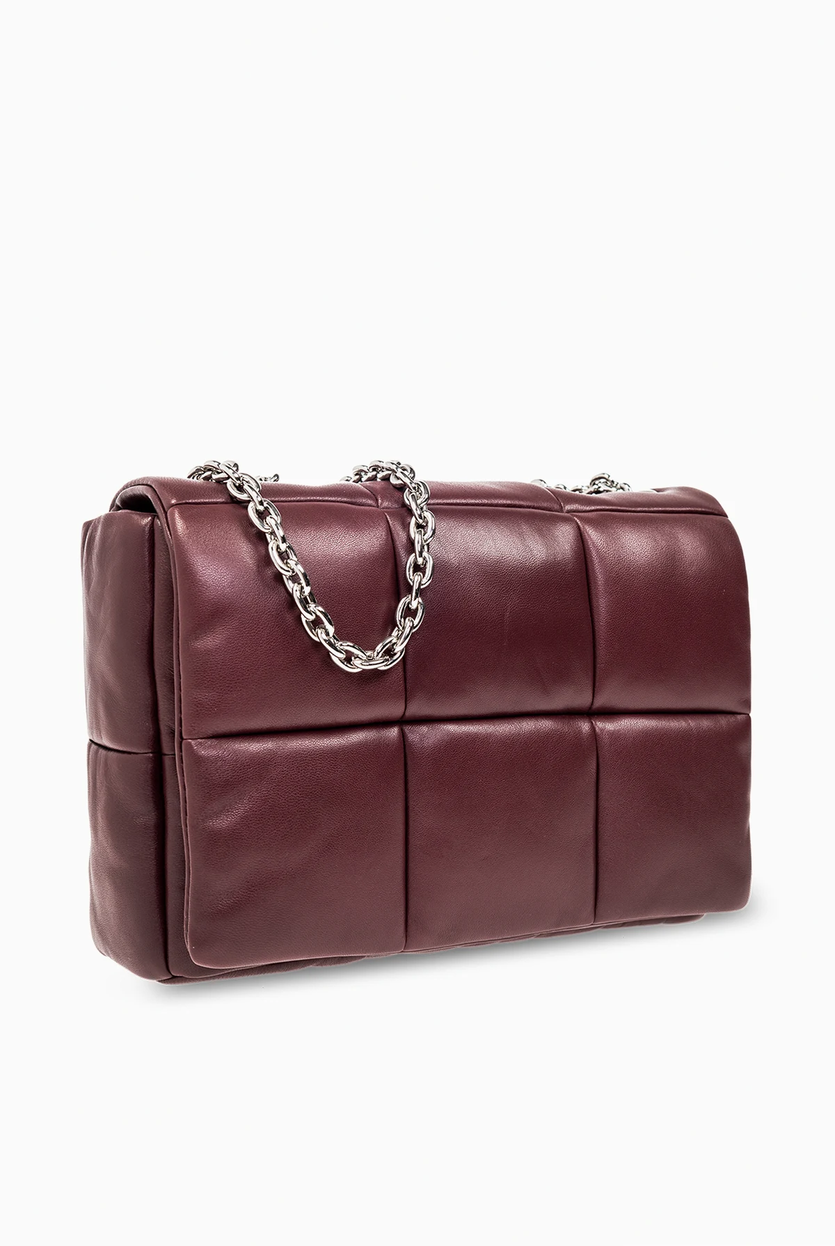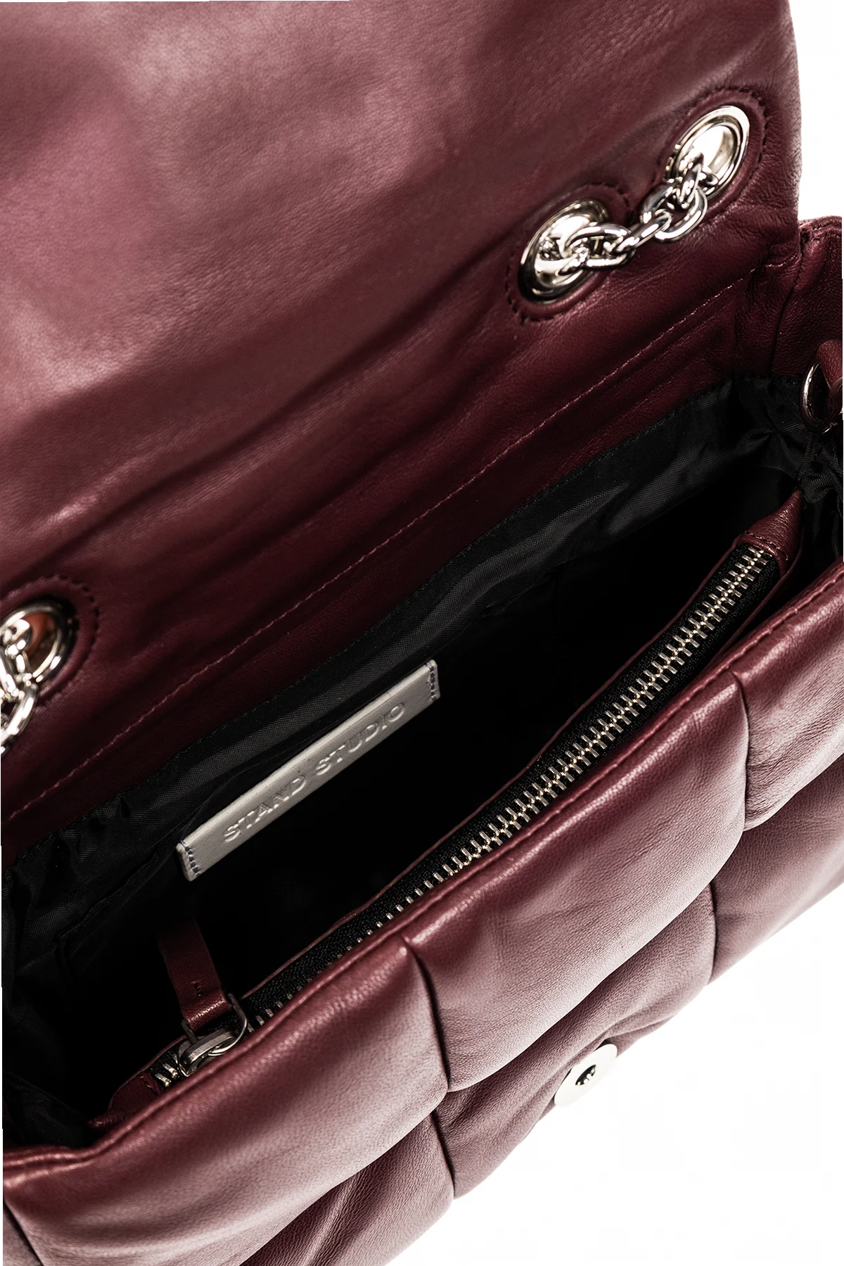Maroon shoulder bag from Stand Studio. Made of lamb leather, this design features a magnetic closure, shoulder bag, silver-tone metal hardware and one internal compartment with one slip pocket.
