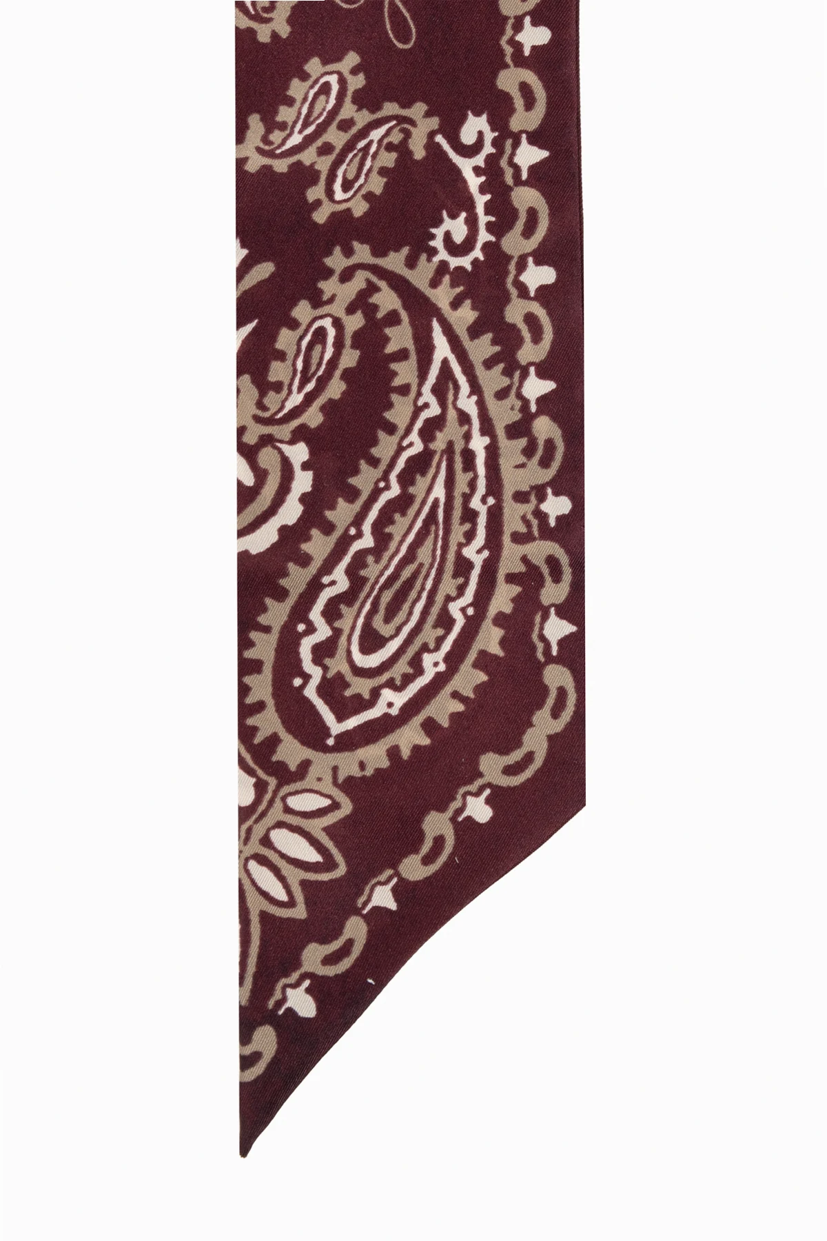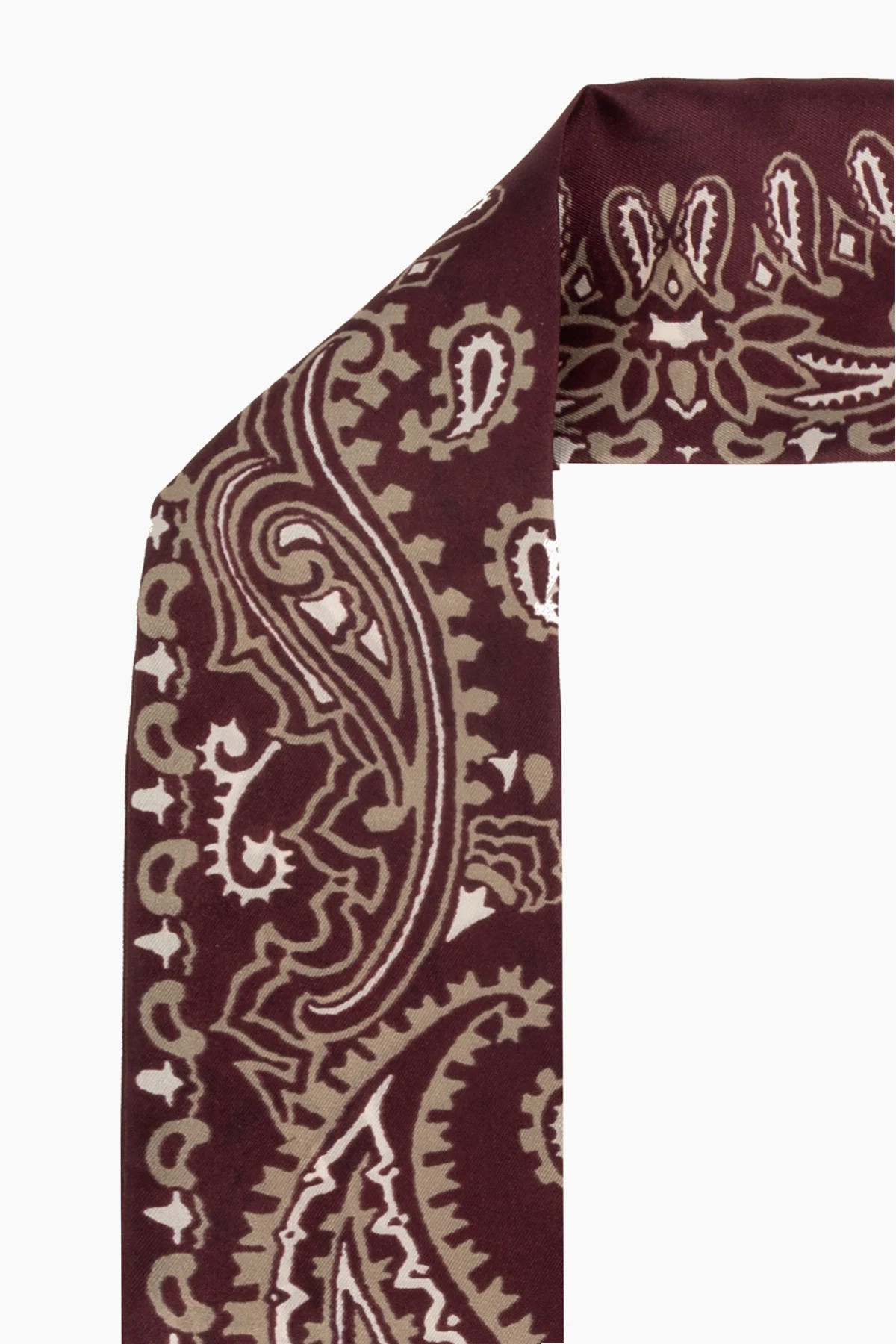 Introducing the Silk Scarf by Golden Goose, a quintessence of elegance and versatility. Crafted from 100% pure silk, this exquisite accessory is a testament to timeless style and luxury. Its elongated, narrow form offers endless possibilities for styling, making it a versatile addition to any wardrobe. The scarf features a rich Paisley pattern, an emblem of sophistication that adorns the fabric in a lighter shade, creating a stunning contrast against its brown backdrop. This intricate design not only exudes an air of exclusivity but also adds a layer of refined character to the piece. Meticulously finished edges and the high-quality material signify this scarf as a premium product, designed by the renowned fashion house, Golden Goose. Although the images shun the explicit display of logos, the style and craftsmanship speak volumes of its high-end lineage. The dominant brown color imbues the scarf with elegance and versatility, allowing for seamless pairing with a multitude of colors and styles. Whether draped over the shoulders or tied around the neck, it gracefully complements any outfit, from a light, patterned blouse to a cozy sweater. Why Purchase This Product? Made from 100% premium silk, promising unparalleled softness and sheen. Features a sophisticated Paisley design, a hallmark of high fashion. Offers versatile styling options, enhancing any outfit with its elegance. Designed by Golden Goose, a testament to quality and exclusivity. Its brown hue ensures easy pairing with a wide range of colors and ensembles.