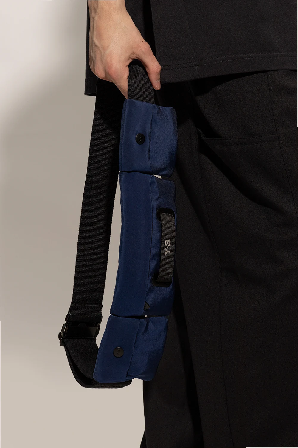 Navy blue belt bag from Y-3 Yohji Yamamoto. Crafted from recycled material, this design consists of three separate pouches: one has a zip closure and logo detail, two have a flap with a snap closure. The design is complete with an adjustable strap with a buckle and silver-tone metal hardware.