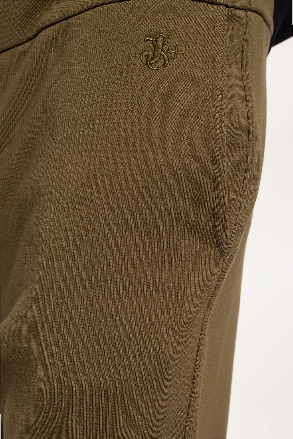 Khaki sweatpants from Jil Sander+. Made of cotton, this pair features a drawstring waist, elasticated cuffs, three slip pockets and logo embroidery on the front.
