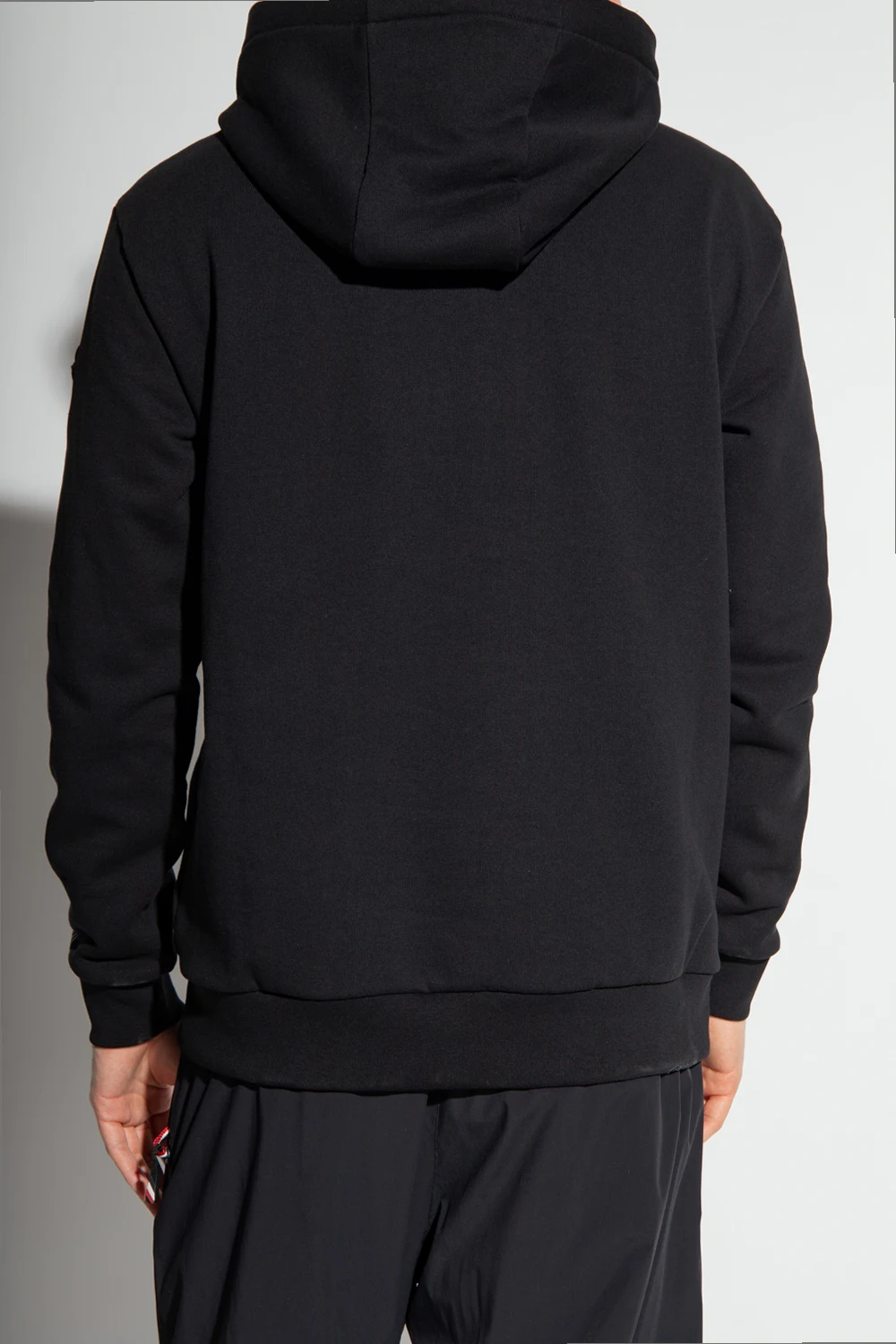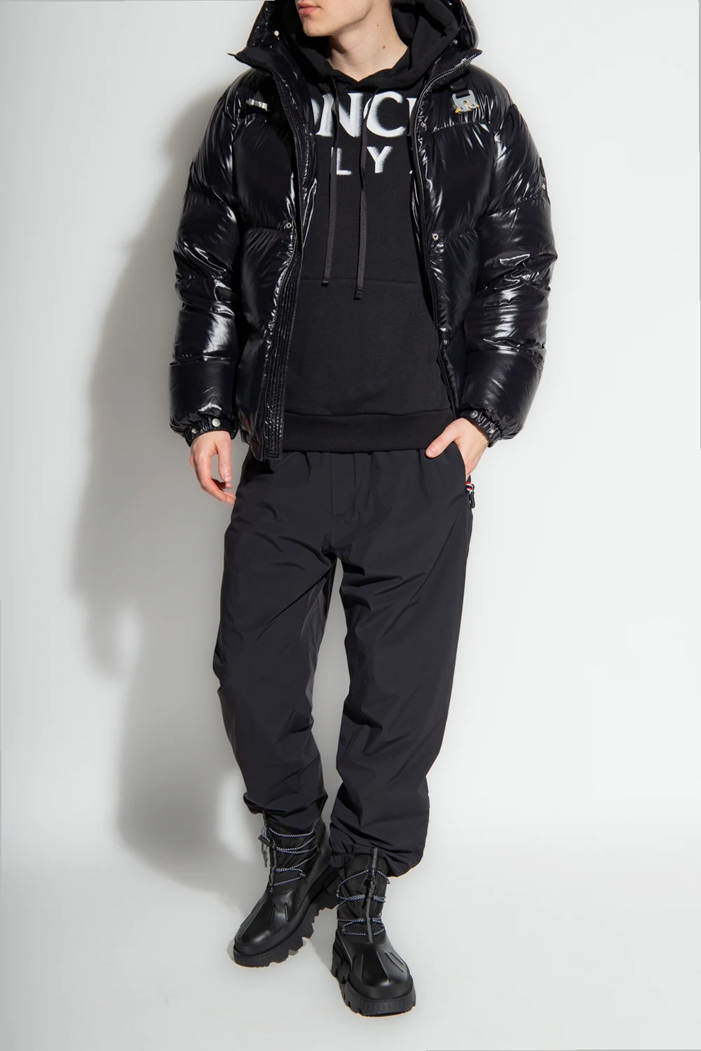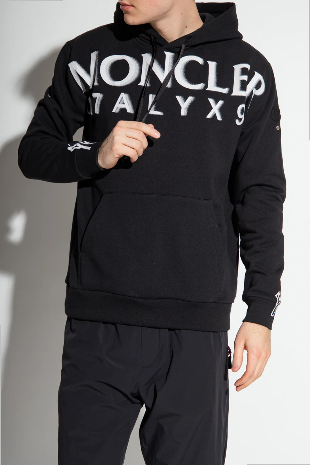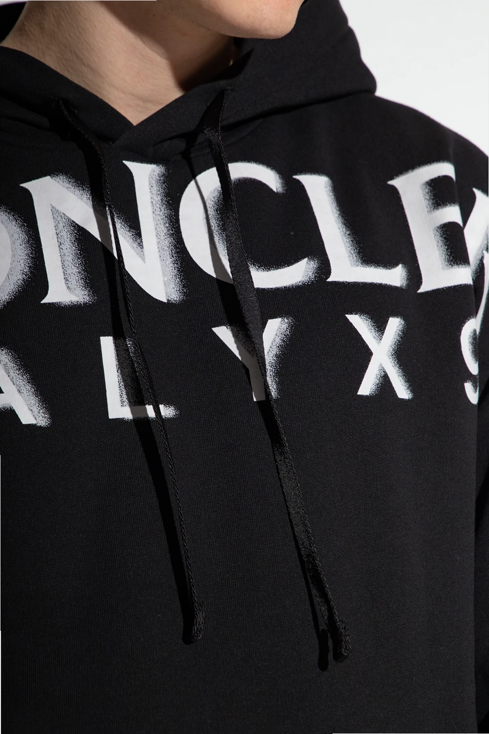 Black sweatshirt with a drawstring hood from Moncler Genius, the ‘6 Moncler 1017 ALYX 9SM’ collection. Made of cotton jersey, this style features a white graphic print with the brand's logo, a kangaroo pocket and a ribbed bottom hem and cuffs.