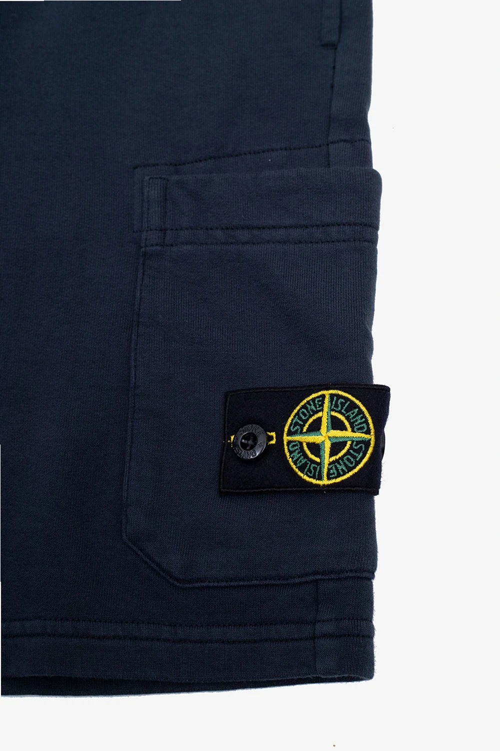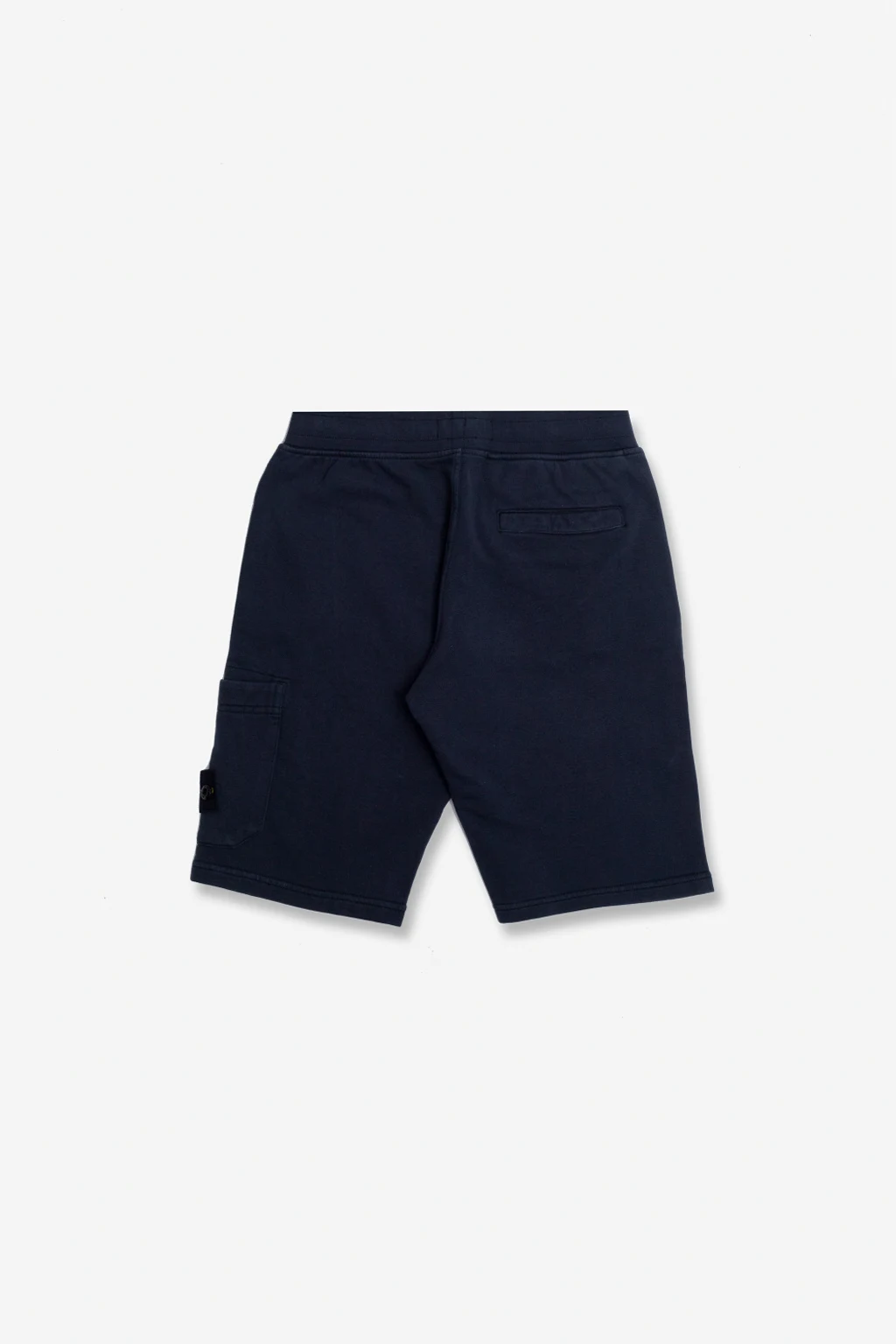 Navy blue shorts from Stone Island Kids. Made of cotton, this pair features a drawstring waistband, a detachable logo patch and four slip pockets.