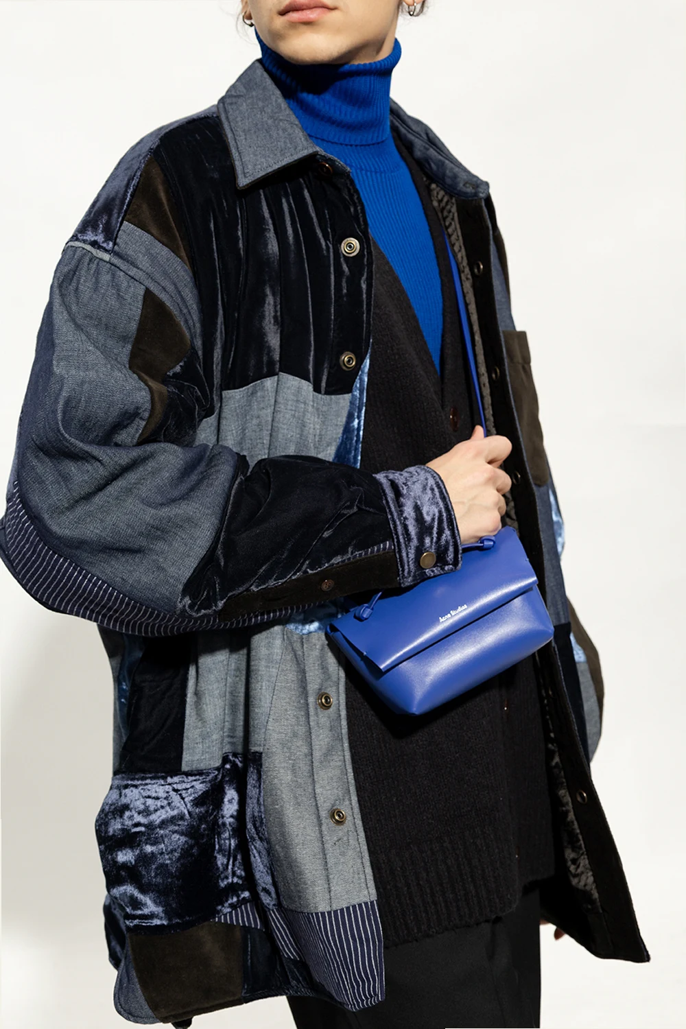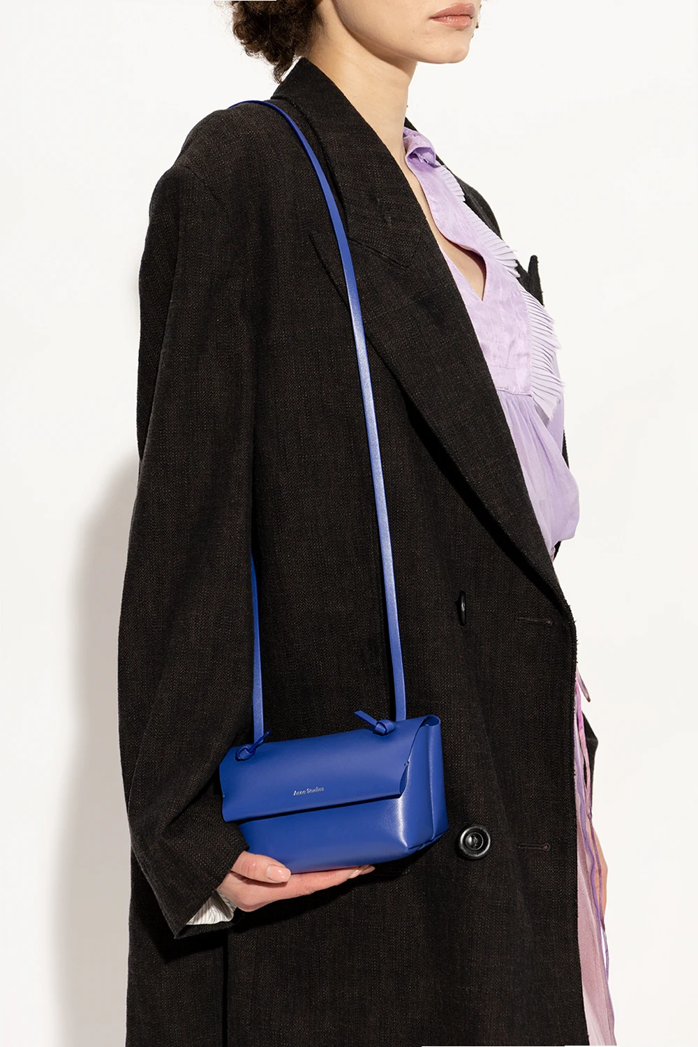 Blue shoulder bag from Acne Studios. Crafted from cow leather, this design features a magnetic fastening, a shoulder strap, silver-tone metal hardware and one internal compartment with a slip pocket.