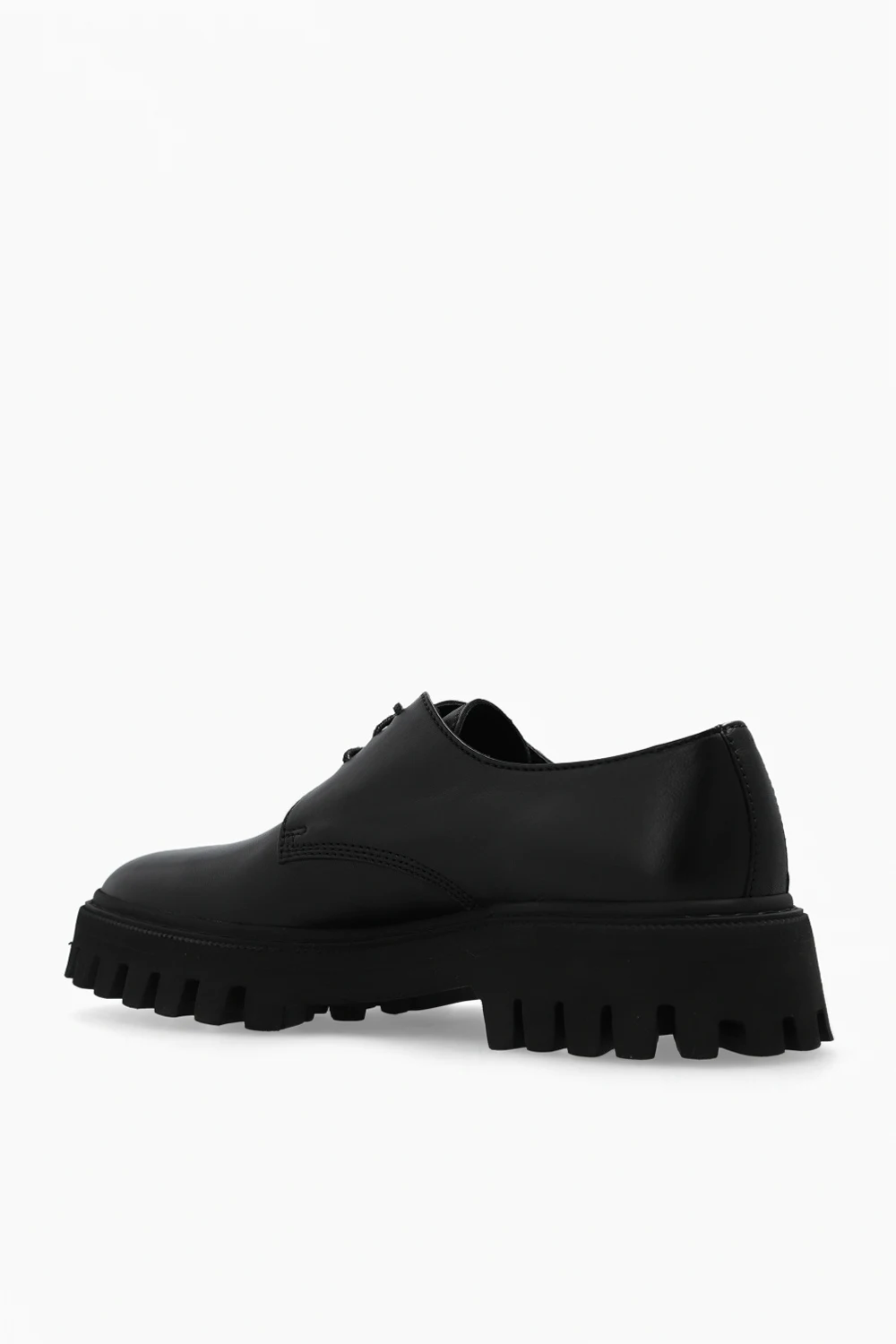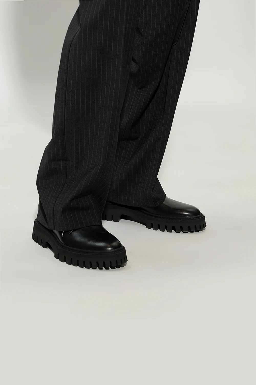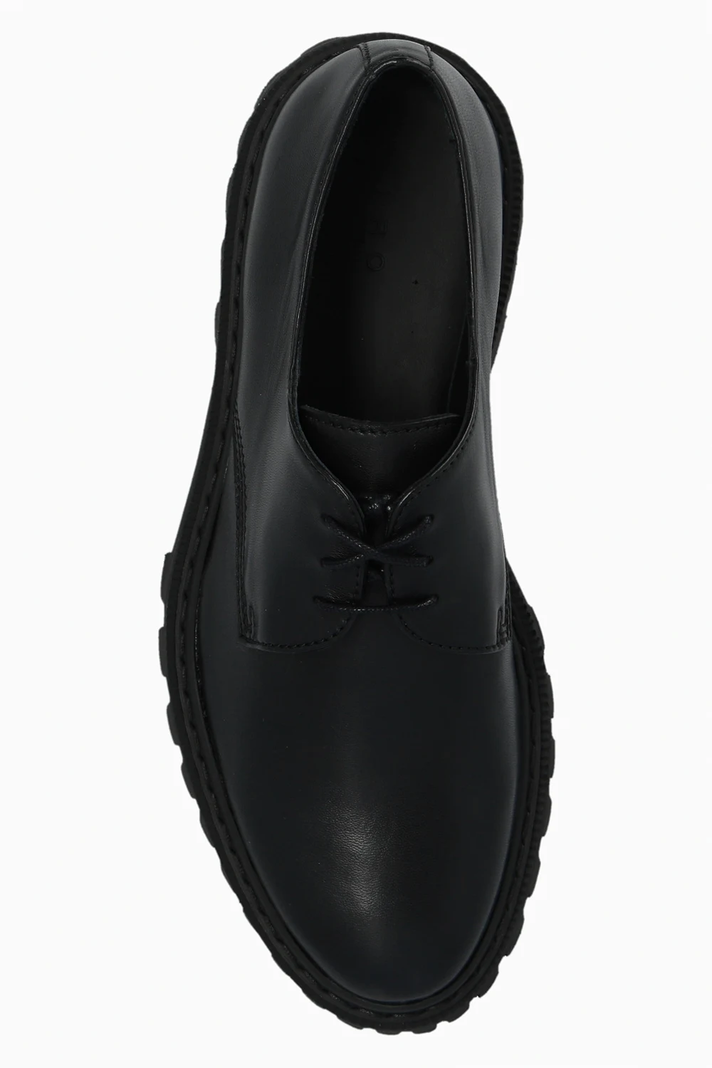 Black ‘Kosmic’ shoes from Iro. Made of leather, this lace-up pair features an almond toe and a black rubber sole.