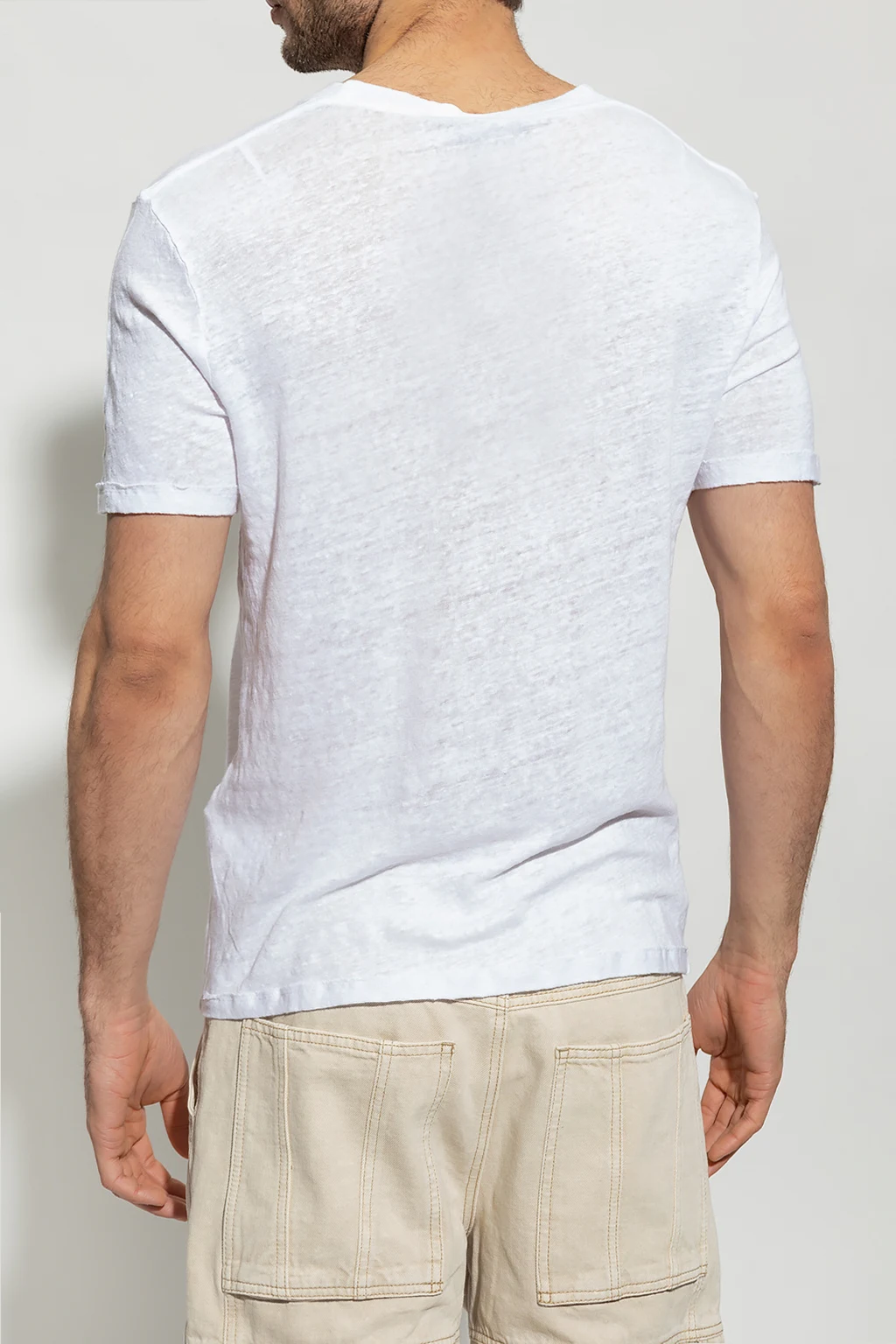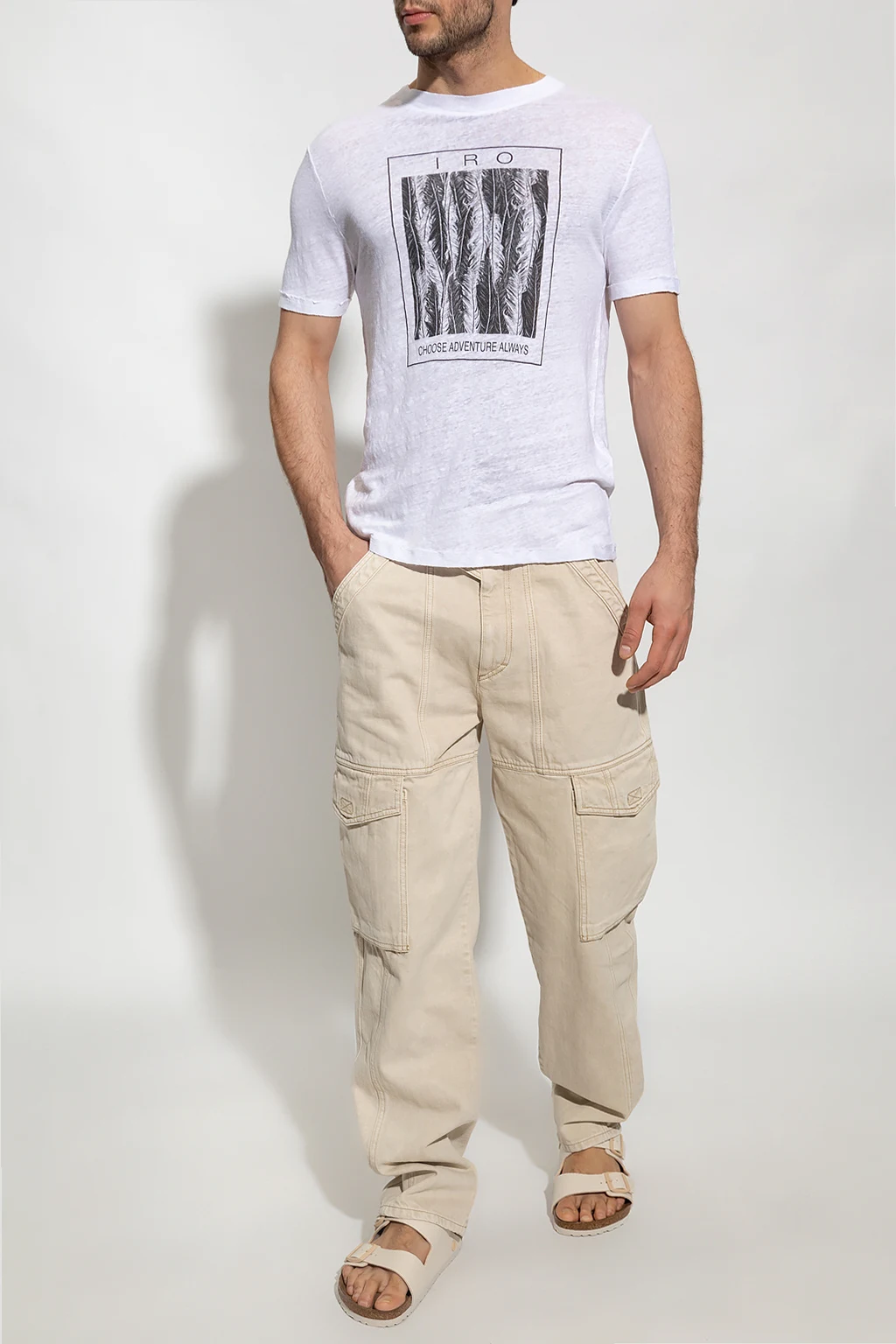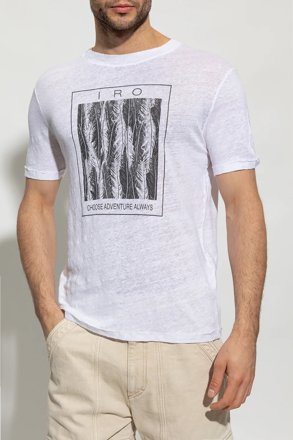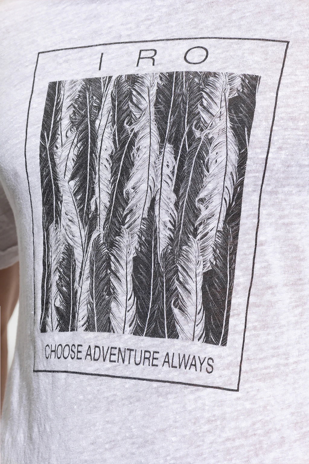 White ‘Jorow’ T-shirt from Iro. Made of linen, this short sleeve design features a feather print and ribbed crew neck.