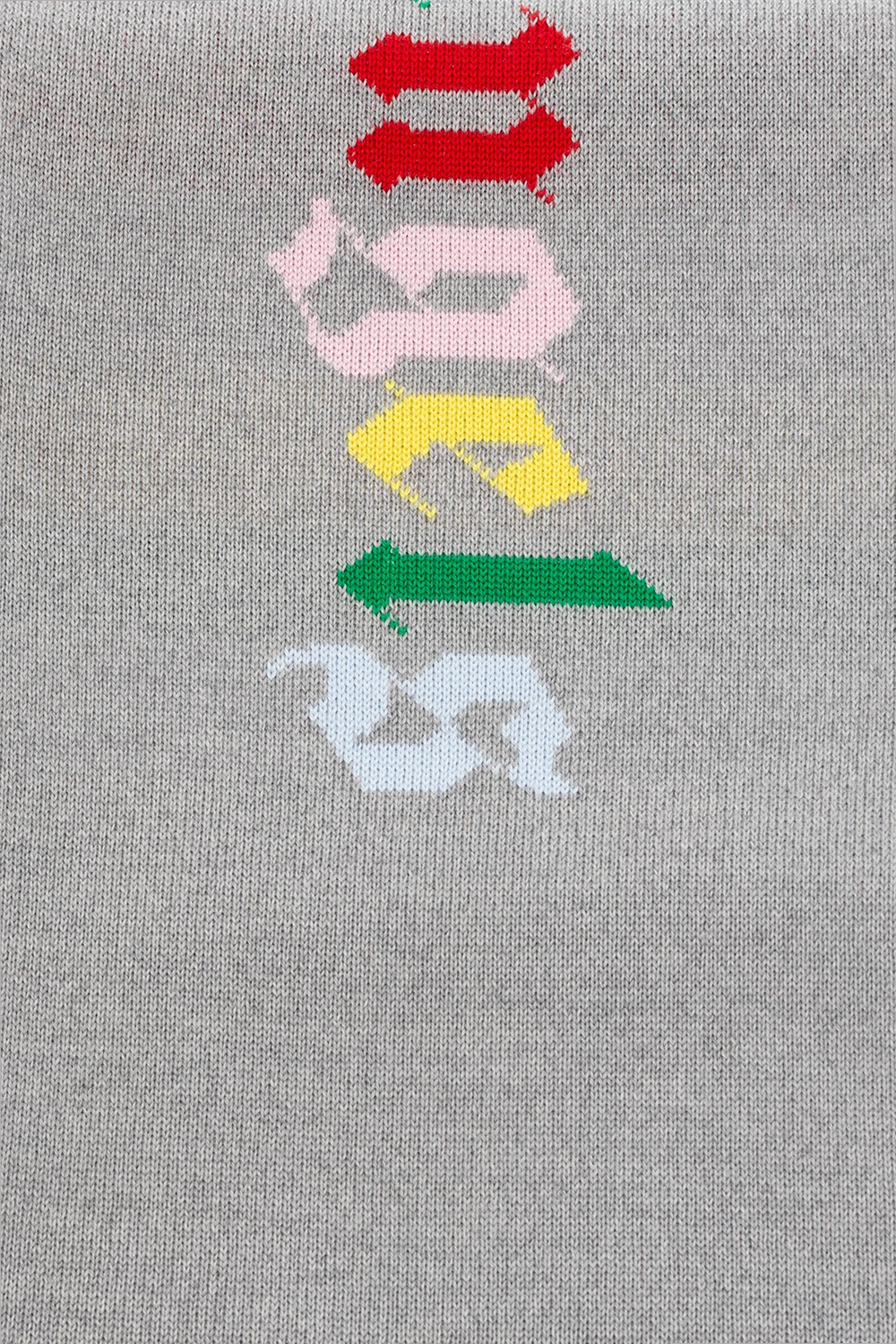 Grey scarf from Palm Angels Kids. Crafted from wool, this item is decorated with a multicolored logo embroidery.