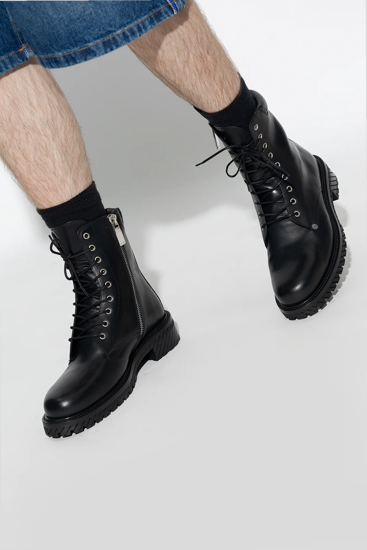 BLACK Leather combat boots