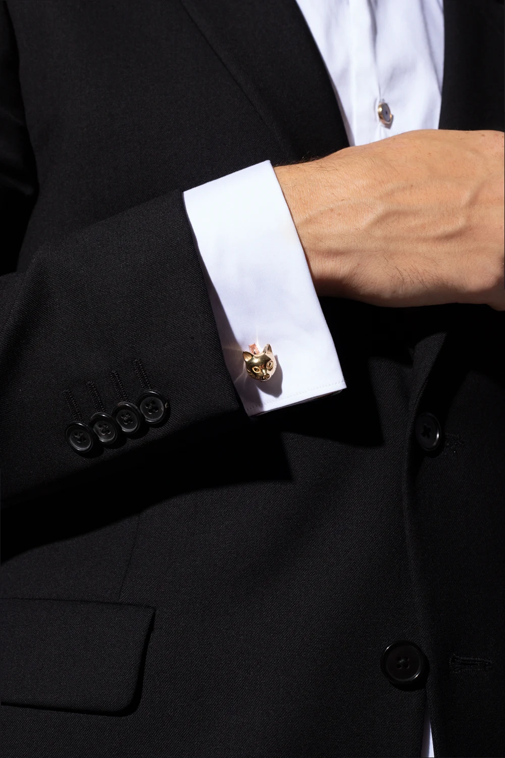 Gold-tone cufflinks with a cat motif from Lanvin. Made of metal.