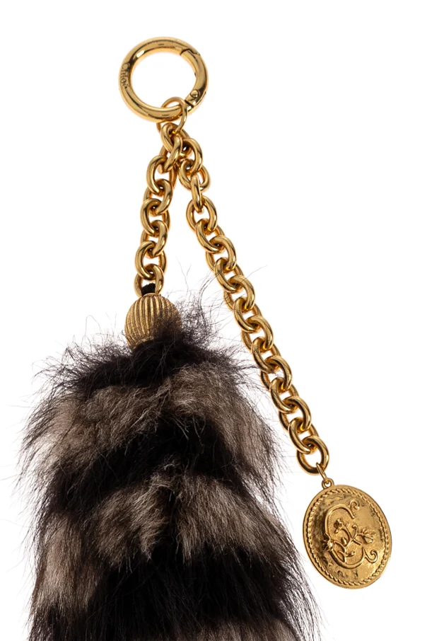Elevate your ensemble with this exquisite bag charm from Chloé , a renowned Parisian house celebrated for its progressive yet timeless vision. Featuring a distinguished elongated, cylindrical silhouette reminiscent of a fox tail, this accessory is enveloped in luxuriously plush, soft sheep fur—alternatively available in premium faux fur—graced with striking horizontal stripes in rich shades of brown and black for a captivating, natural fur effect. The piece is expertly adorned with a luminous gold-tone brass chain, culminating in a finely crafted circular clasp for effortless attachment. A signature round medallion—embellished with a delicate, embossed motif—serves as a subtle designer hallmark, underscoring the charm’s exclusivity. This refined creation seamlessly infuses sophistication and textural intrigue into any ensemble. Why choose this product? Crafted from sumptuous sheep fur and polished brass Distinguished by a nature-inspired, striped design Subtle yet iconic designer motif for discreet luxury Elegant gold-tone hardware ensures both utility and allure Effortlessly enhances the sophistication of any bag