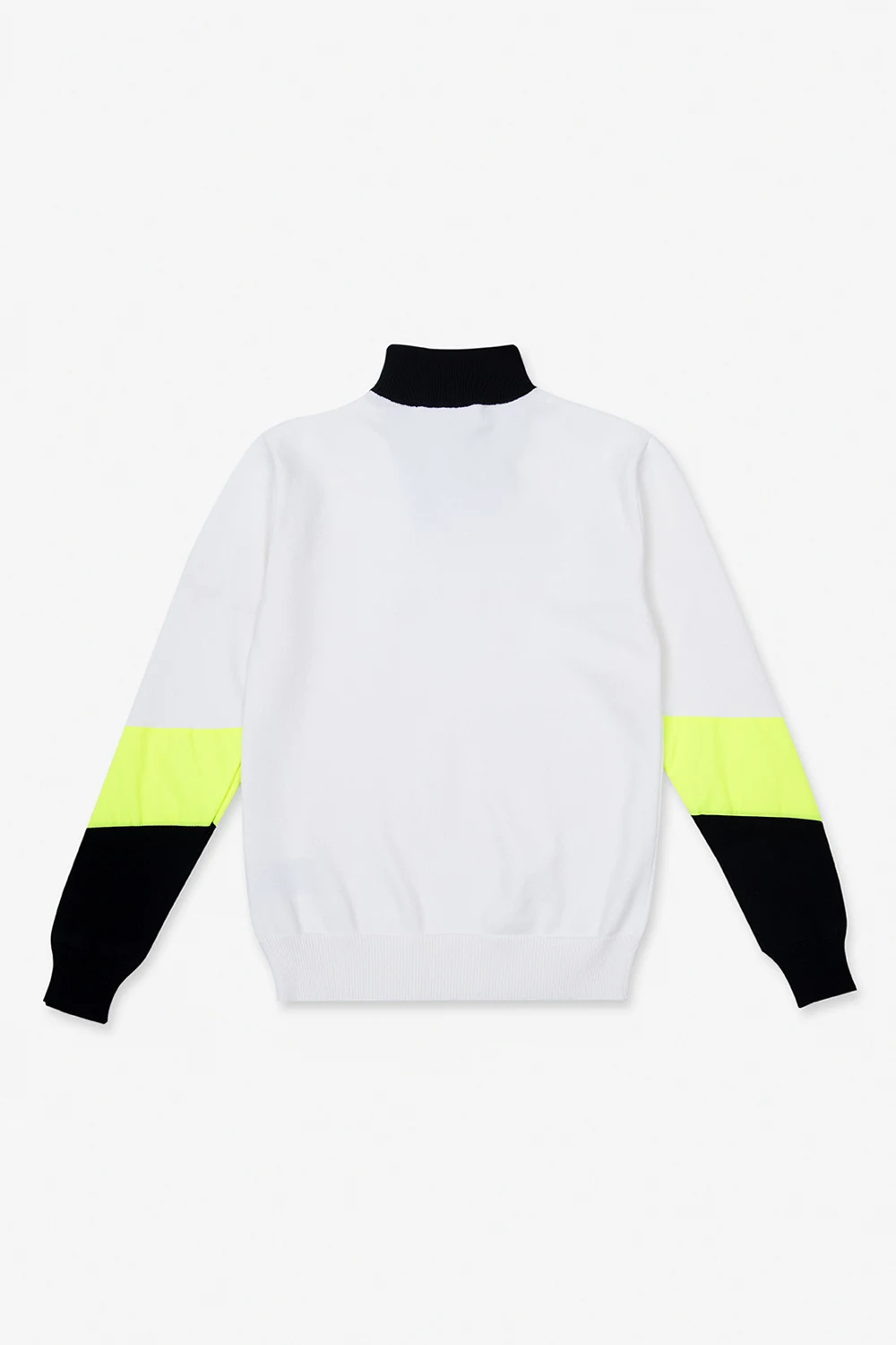 Black, white and yellow sweater from Balmain Kids. This long sleeve garment features a zipped stand collar and ribbed trims at the hem and cuffs.