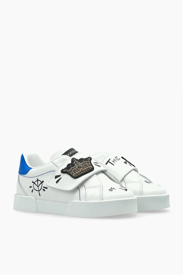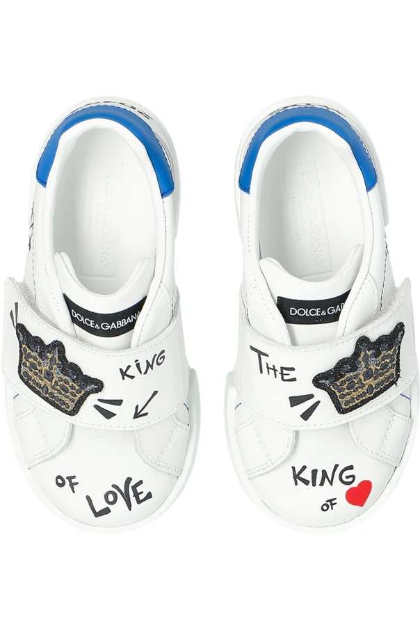 Elevate children's everyday style with these exquisite white sneakers from Dolce & Gabbana Kids , a testament to unparalleled craftsmanship and contemporary flair. Their classic round-toe silhouette and boldly contoured white rubber sole evoke timeless elegance, while modern printed accents bring playful sophistication.