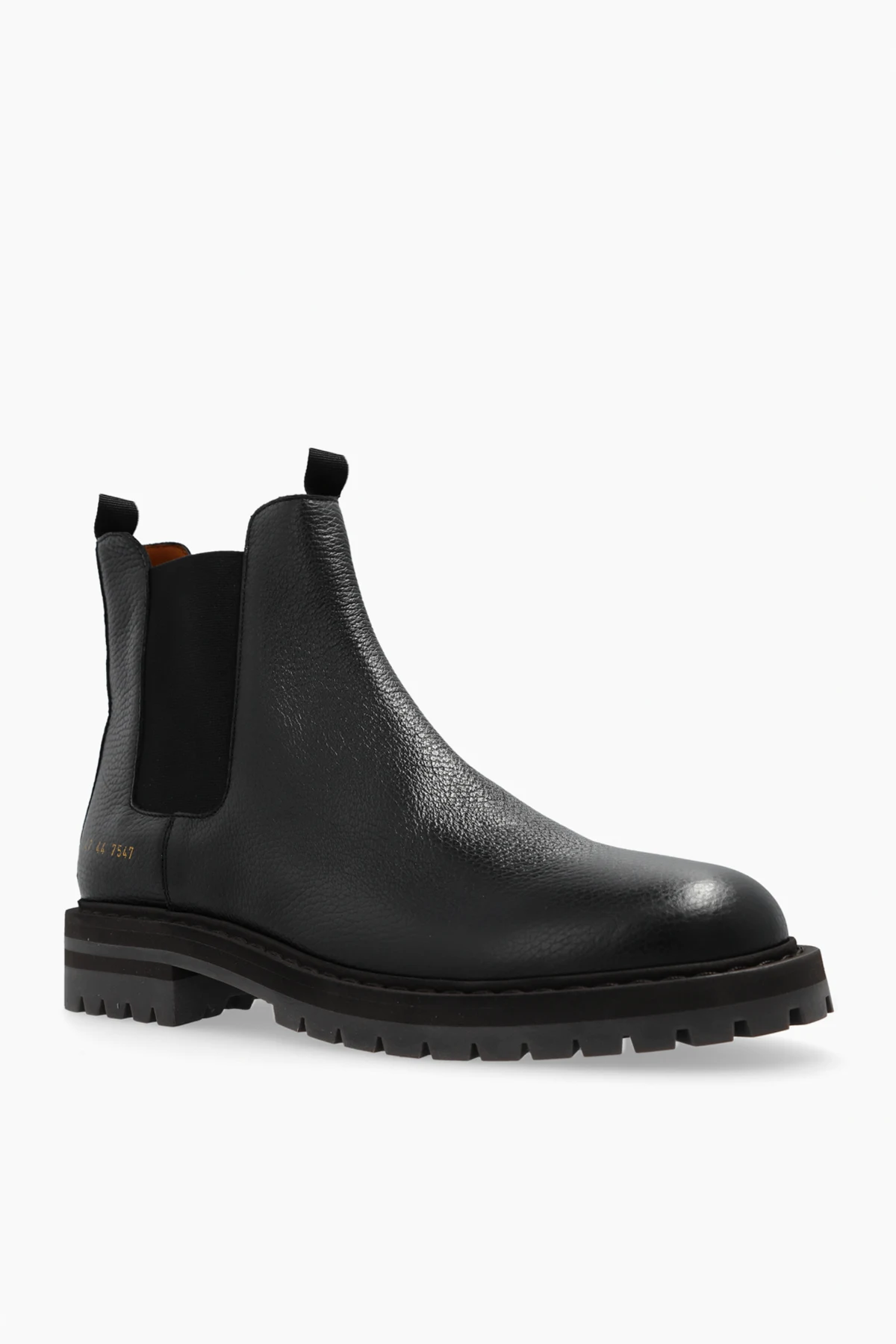 Introducing the epitome of sophistication and timeless elegance – the Common Projects Chelsea Ankle Boots. Crafted meticulously from premium black calfskin leather, these boots are a true testament to the exquisite craftsmanship and minimalist design ethos of renowned designers Flavio Girolami and Prathan Poopat. Boasting a classic Chelsea silhouette with a rounded toe, these ankle boots are not only a visual delight but also a statement of enduring style. The high-quality leather exterior features a delicate texture, while the thick rubber sole with a pronounced tread ensures superior grip and durability. The elastic side panels and rear pull tab facilitate effortless wear, complemented by the striking orange lining that adds a bold contrast to the sleek black exterior. Distinctively, the gold-printed model number near the heel exudes exclusivity and elegance, making these boots a standout addition to any discerning gentleman’s wardrobe. Whether paired with casual or formal attire, these versatile boots are designed to elevate any ensemble with their refined charm. Why Choose This Product? Exceptional craftsmanship from the esteemed Common Projects brand. Premium black calfskin leather for a luxurious feel. Durable rubber sole with excellent grip. Convenient elastic inserts and rear pull tab for easy wear. Contrasting orange lining for a touch of sophistication. Gold-printed model number for an exclusive look.