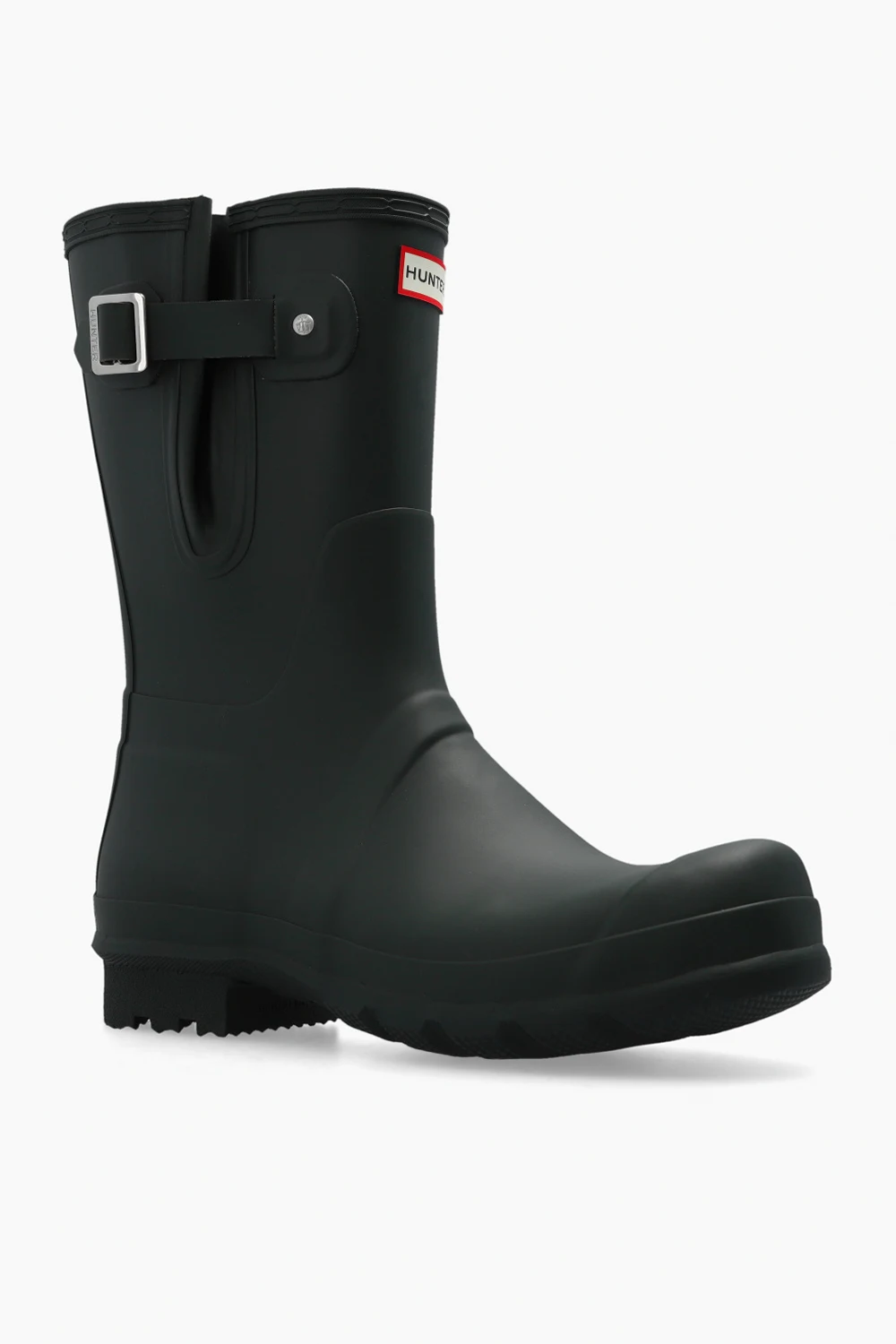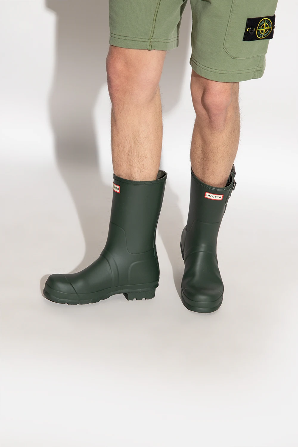 Green ‘Original Side Adjustable Short’ rain boots from Hunter. Handcrafted from vulcanized natural rubber with a matte finish, this pair features a logo detail, adjustable buckle strap on the side and rubber sole with the signature Hunter Original tread.