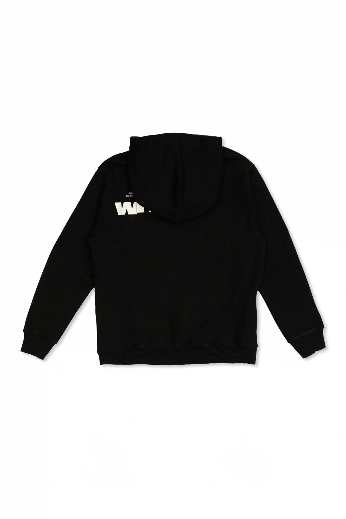 Introducing the Off-White™ Kids Black Hoodie, an exquisite creation from the renowned brand Off-White™. Tailored for boys aged 4-14, this hoodie epitomizes minimalist elegance with a contemporary flair. Crafted from a sumptuous, thicker cotton fabric, this hoodie offers unparalleled softness and warmth, making it an ideal choice for cooler days. The design boasts a classic, straight cut with long sleeves and a hood, presenting a timeless silhouette without compromising on comfort. The front features a large kangaroo pocket, perfect for keeping little hands warm or storing small treasures. Subtle yet striking, the hoodie is adorned with a white "Off-" logo on the chest and a "White" print on the back, exuding the brand's signature aesthetic. The inner hood bears a distinctive yellow label with the inscription "Off-White™ Kids," highlighting its Milanese origin. Why Choose This Product? Superior Material: Made from 100% premium cotton for a luxurious feel. Distinctive Design: Features iconic Off-White™ branding with minimalist prints. Functional Elegance: Includes a practical kangaroo pocket. Exclusive Origin: Designed in Milan, Italy, embodying rich Italian craftsmanship. Versatile Wear: Perfect for various occasions, ensuring both style and comfort.