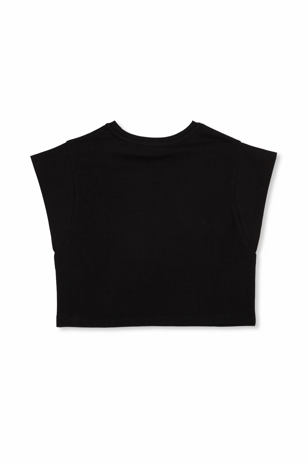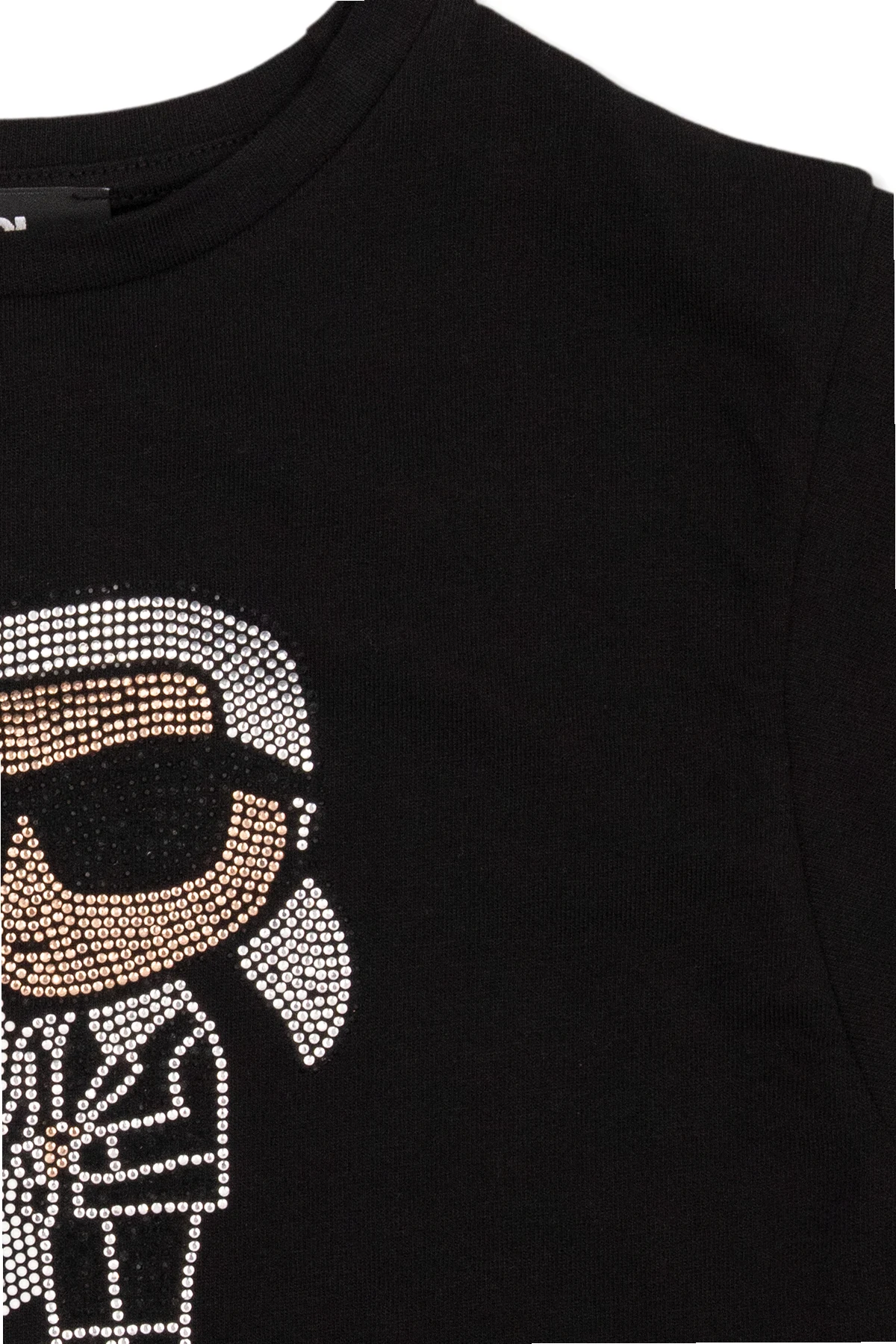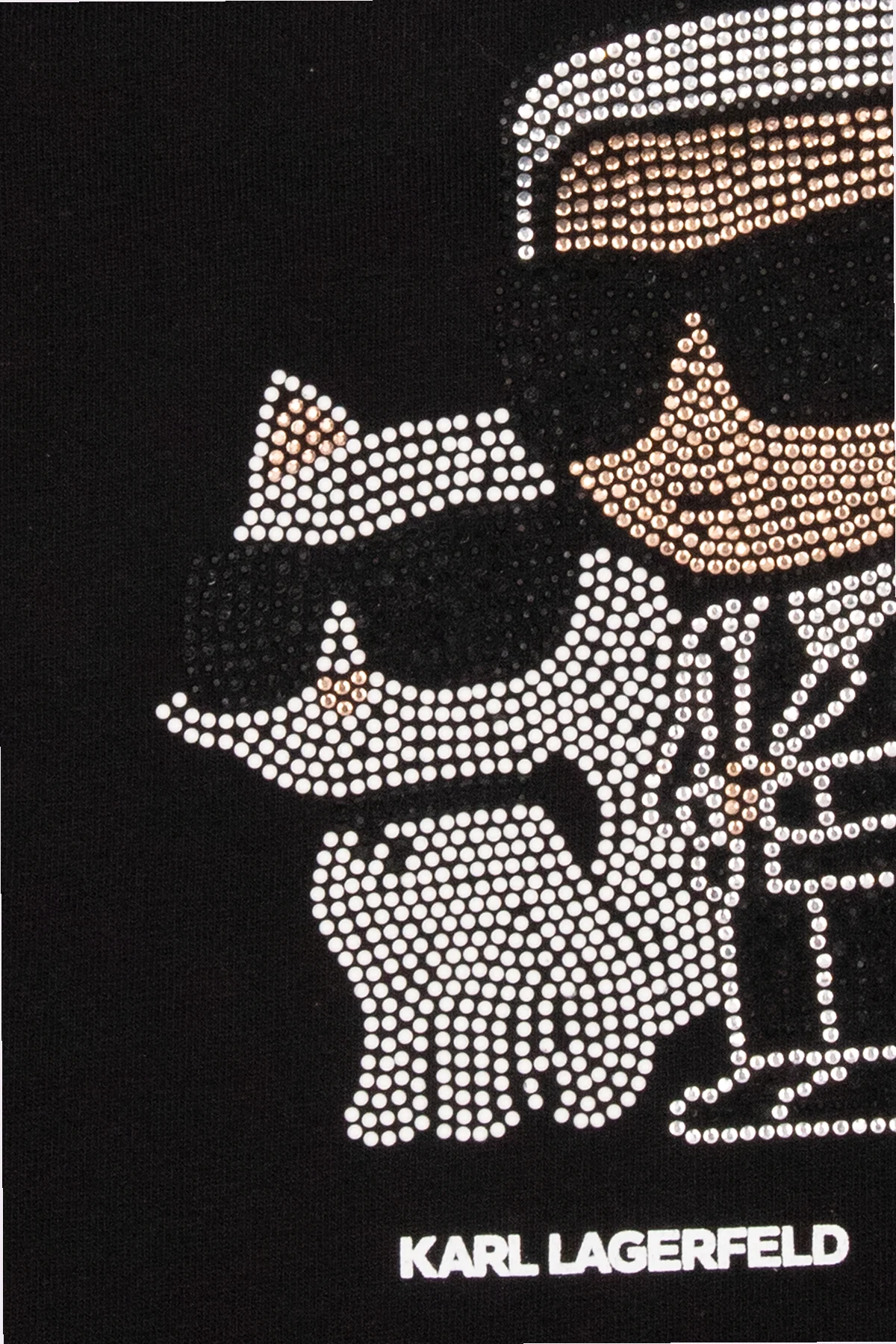 Black T-shirt from Karl Lagerfeld Kids. Made of cotton, this short sleeve design features a logo print, graphic artwork of the designer’s beloved cat Choupette and a ribbed crew neck.