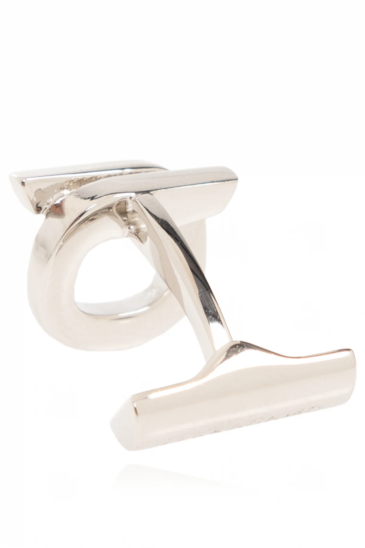 Silver-tone cufflinks with a logo pattern from FERRAGAMO. Made of brass.