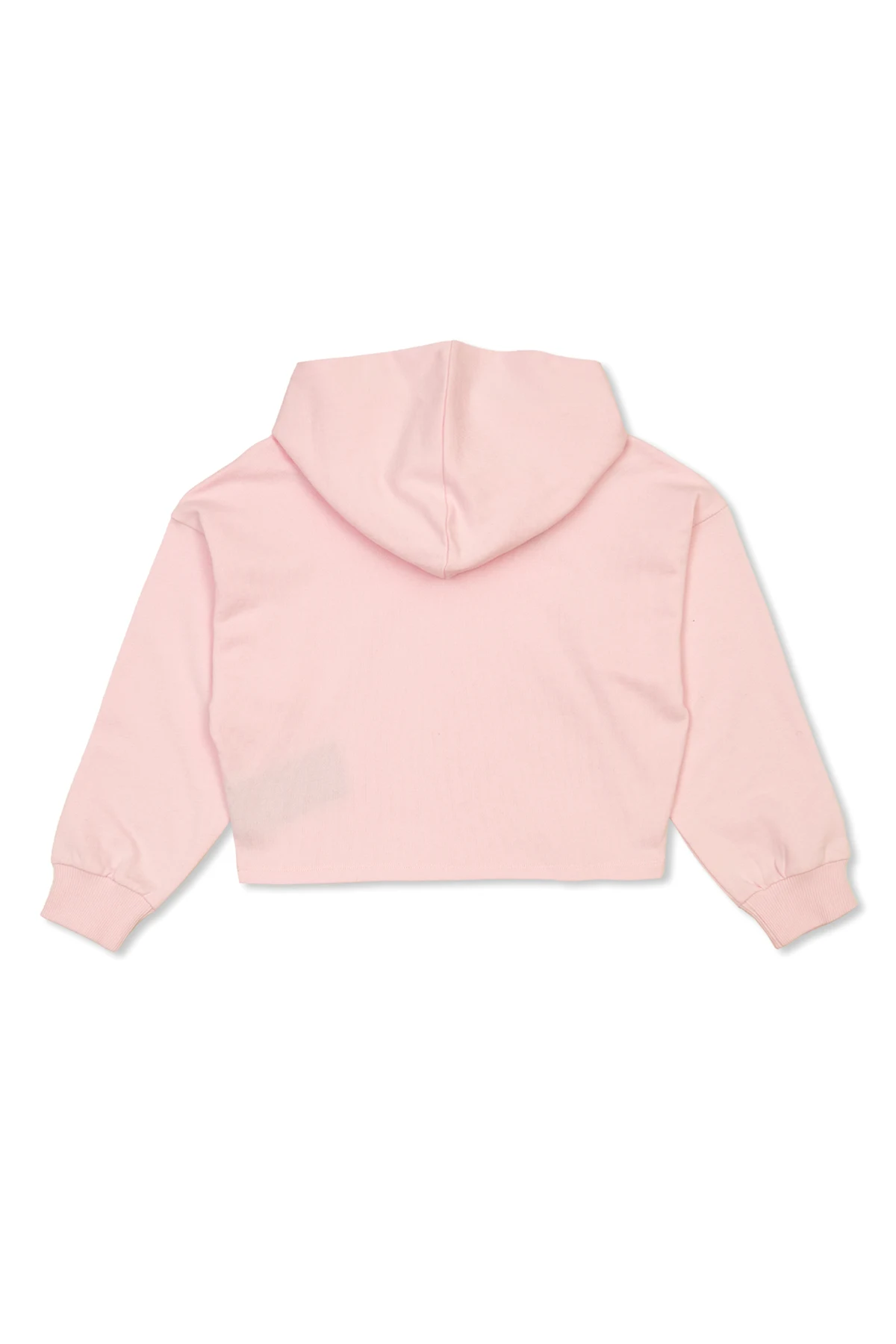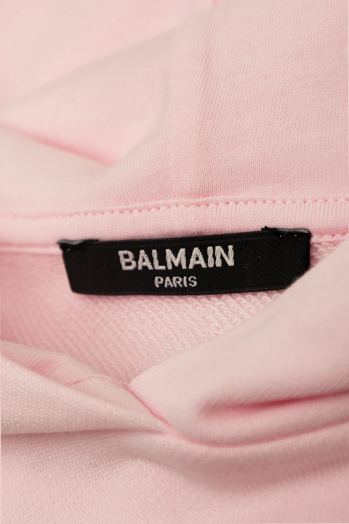 Introducing a quintessence of modern elegance and casual luxury - the Balmain Kids' Short Hoodie in a captivating shade of pink. This piece marries the effortless comfort of high-quality cotton blend fabric, comprising 95% cotton and 5% elastane, with the contemporary allure of high fashion. Its smooth and supple material ensures a flattering fit that's both comfortable and chic. The hoodie features a classic round neckline complemented by a drawstring hood, offering both style and functionality. Long sleeves and a broad elastic hem hint at an oversized or crop top silhouette, artfully revealing a hint of the torso, and aligning perfectly with avant-garde fashion sensibilities. Unique to this garment is the subtle designer logo, embroidered with delicate, possibly shimmering threads on the front left chest, adding an exclusive touch to its minimalist design. The presence of the Balmain Paris tag confirms its pedigree, associating this garment with the realms of haute couture. Absent of overt patterns or embellishments, its design speaks volumes through understatement, making it a versatile addition to any discerning wardrobe. Why Purchase This Product? Exclusive Balmain Paris lineage, symbolizing high fashion prestige. Minimalist yet sophisticated design with a subtle, embroidered logo for an understated luxury appeal. Constructed from a high-quality cotton blend for utmost comfort and durability. Adjustable drawstring hood and a versatile silhouette that complements modern styling trends. Embraces both comfort and elegance, making it suitable for various occasions.