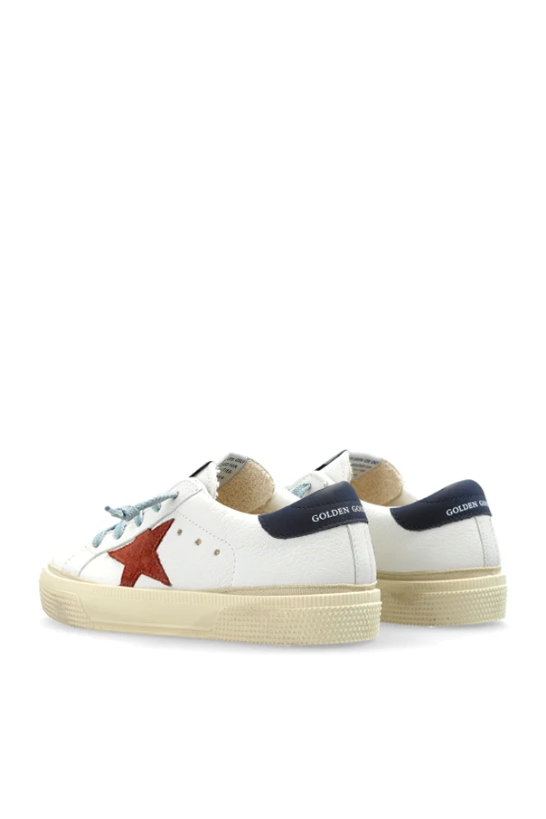 Discover elevated style and enduring comfort with the ‘May Folded Lining All Around’ kids’ sneakers by Golden Goose. Cloaked in a pristine white leather upper and lined for supreme comfort, these low-top sneakers embody effortless sophistication with a playful twist.