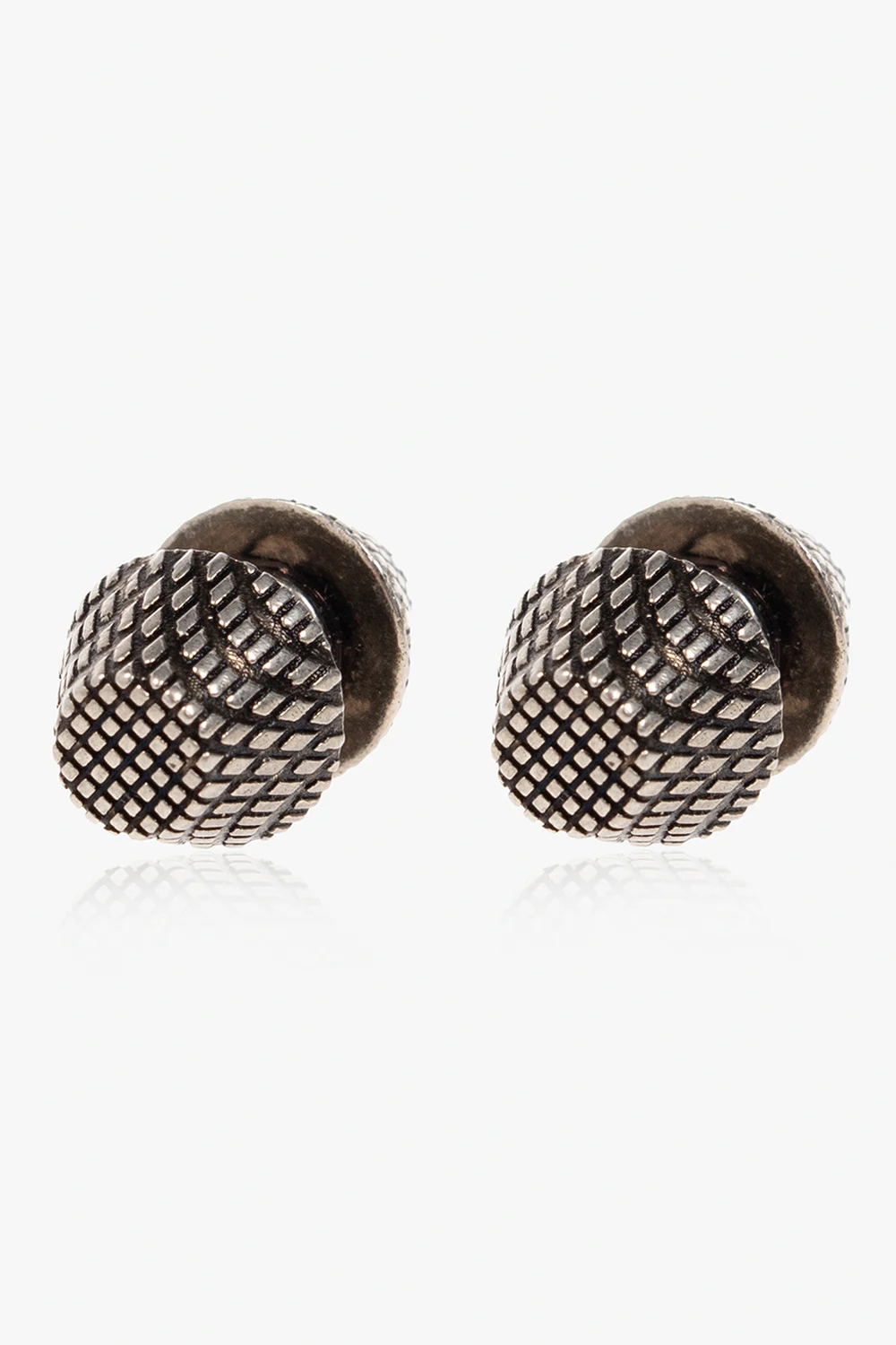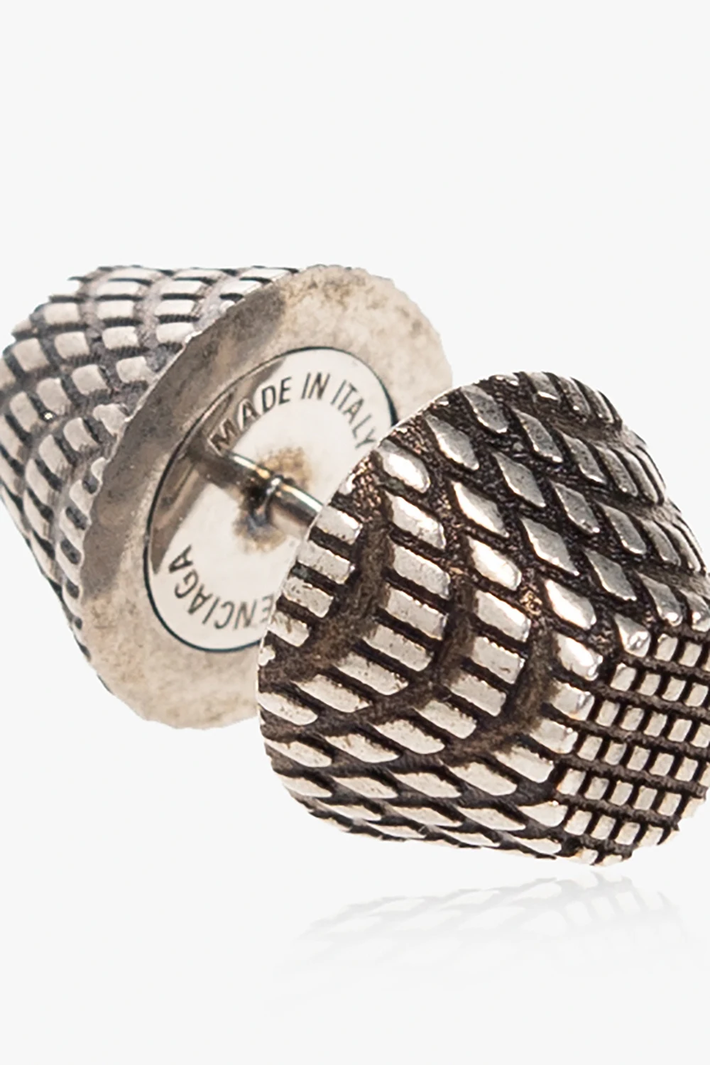 Antique silver-tone earrings from Balenciaga. Made of brass.