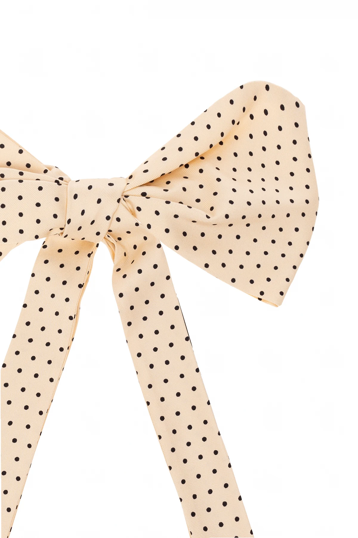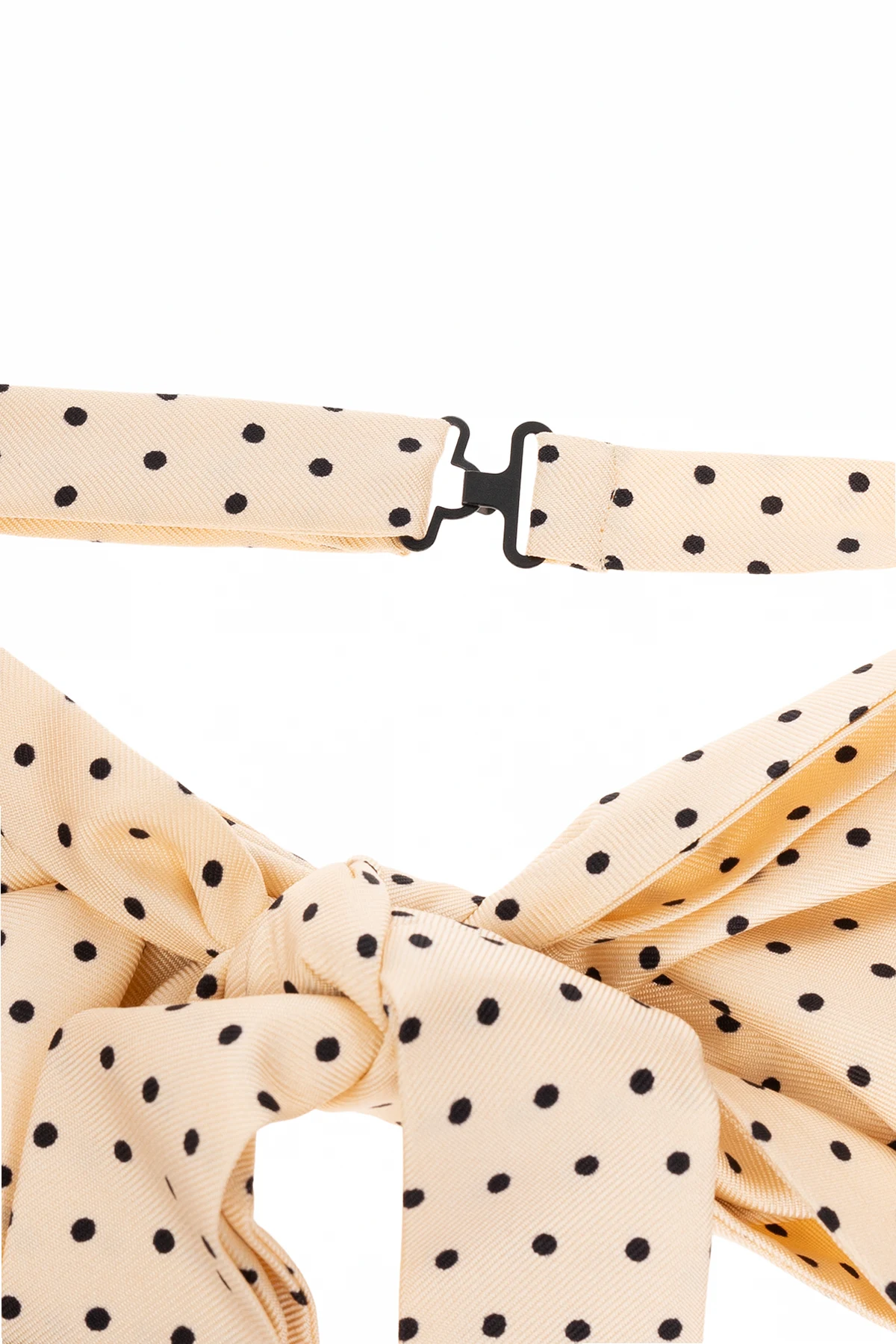 Cream bow tie from Etro. Made of silk, this item adjusts via a hook and showcases a pattern with black dots.