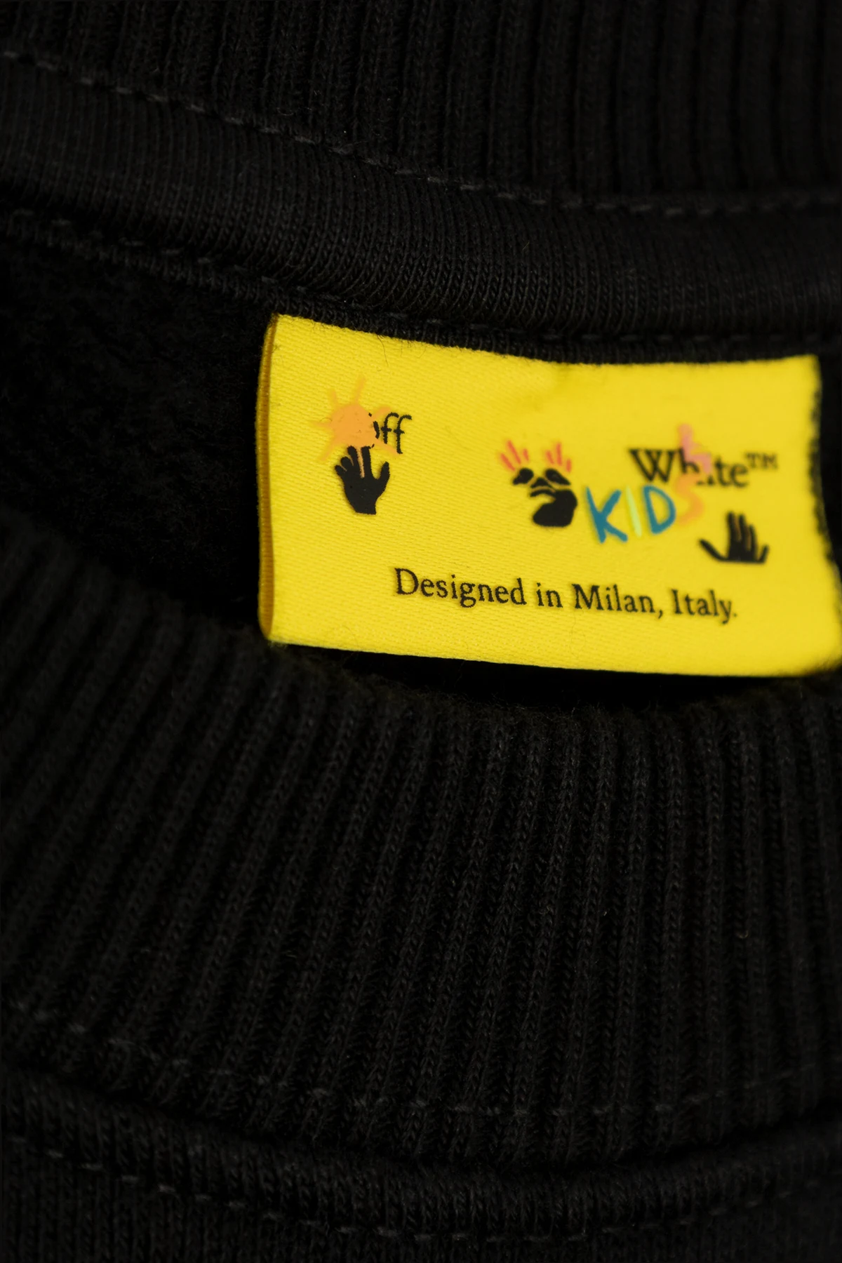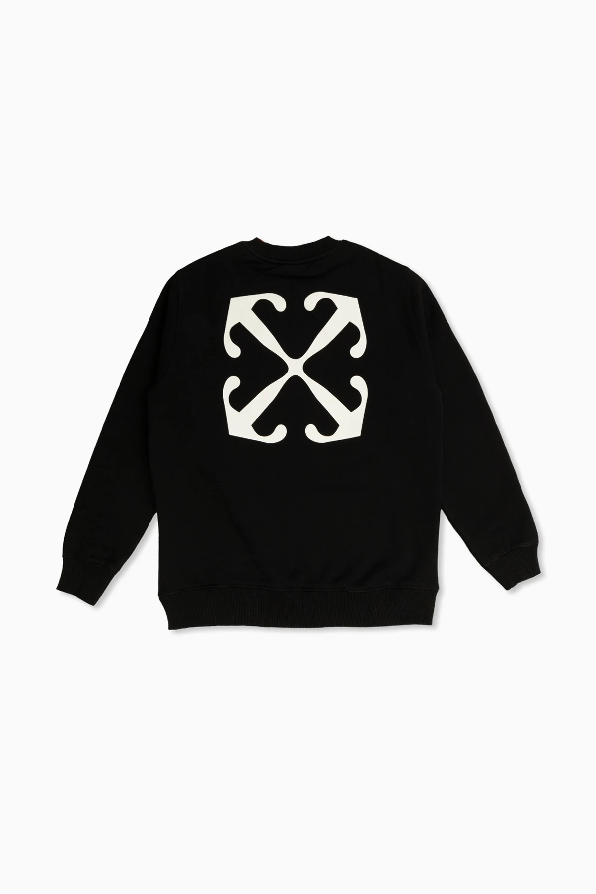 Embrace sophistication and youthfulness with the exclusive Off-White™ Kids Black Logo Sweatshirt. This piece, meticulously crafted from premium cotton, epitomizes the brand's iconic fusion of high fashion and streetwear aesthetics. The front of the sweatshirt features a minimalist white "OFF" logo, strategically placed at chest height, exuding understated elegance. The back showcases a bold, signature white print of crossed arrows, a distinctive hallmark of Off-White™. Designed for comfort, the sweatshirt incorporates ribbed cuffs and hem, ensuring a perfect fit for boys aged 4 to 14. Inside, a yellow label proudly states "Off-White" and "Designed in Milan, Italy," underscoring the garment's elite craftsmanship and heritage. Why Choose This Product? Exclusive Design: Features signature Off-White™ logos. Premium Material: Made from high-quality cotton for superior comfort. Comfort Fit: Ribbed cuffs and hem for a snug, comfortable fit. Heritage Craftsmanship: Designed in Milan, reflecting Italian artistry. Versatile Style: Perfect blend of high fashion and streetwear.