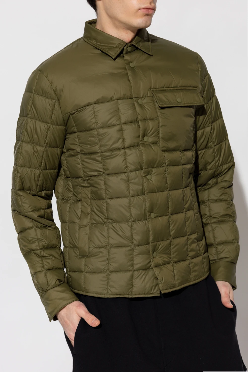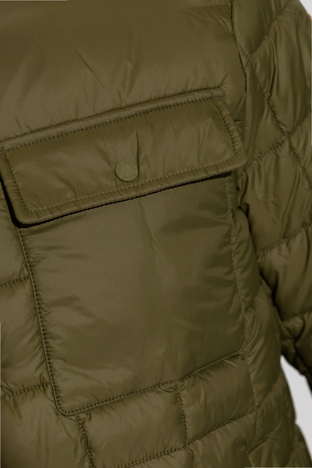 Dark green ‘Carina’ jacket from Save The Duck. Emblazoned with a logo patch, this style features snap fastenings, long sleeves and two zip pockets.