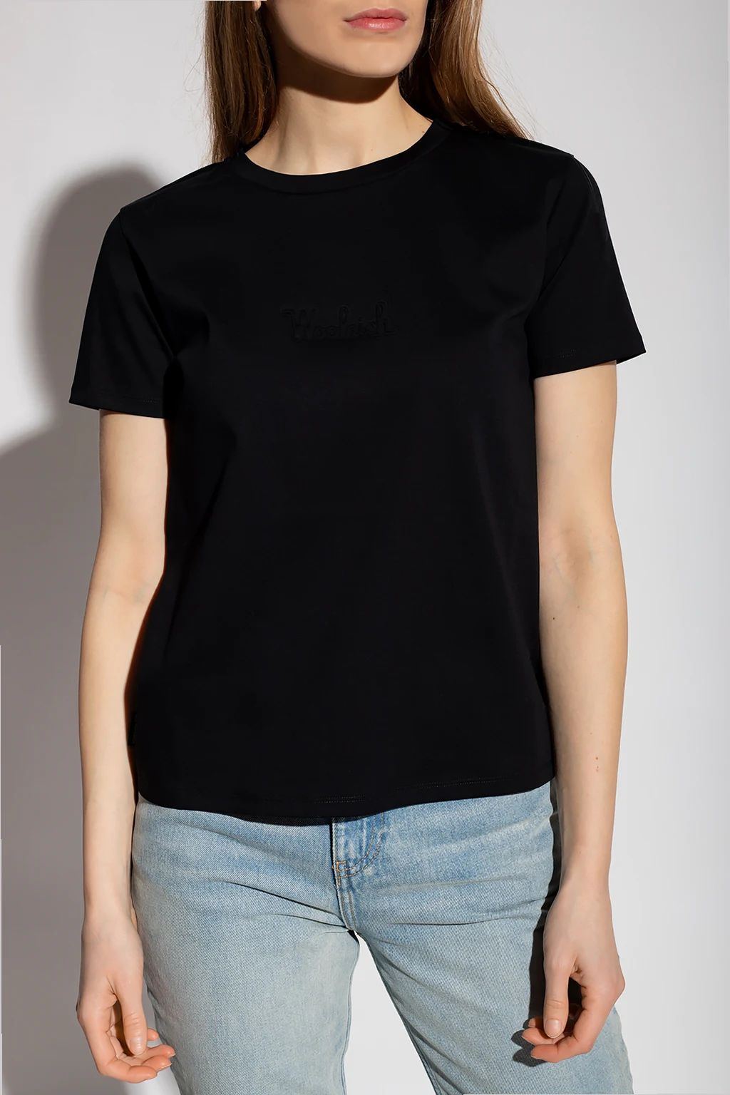 Black crewneck T-shirt from Woolrich. Made of cotton, this short sleeve design boasts the label’s raised logo.