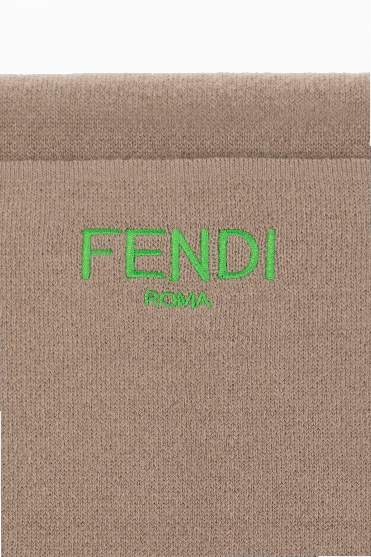 Beige and green scarf from Fendi Kids. Made from a wool and cashmere blend, this item features a monogram pattern and logo-embroidered pocket.