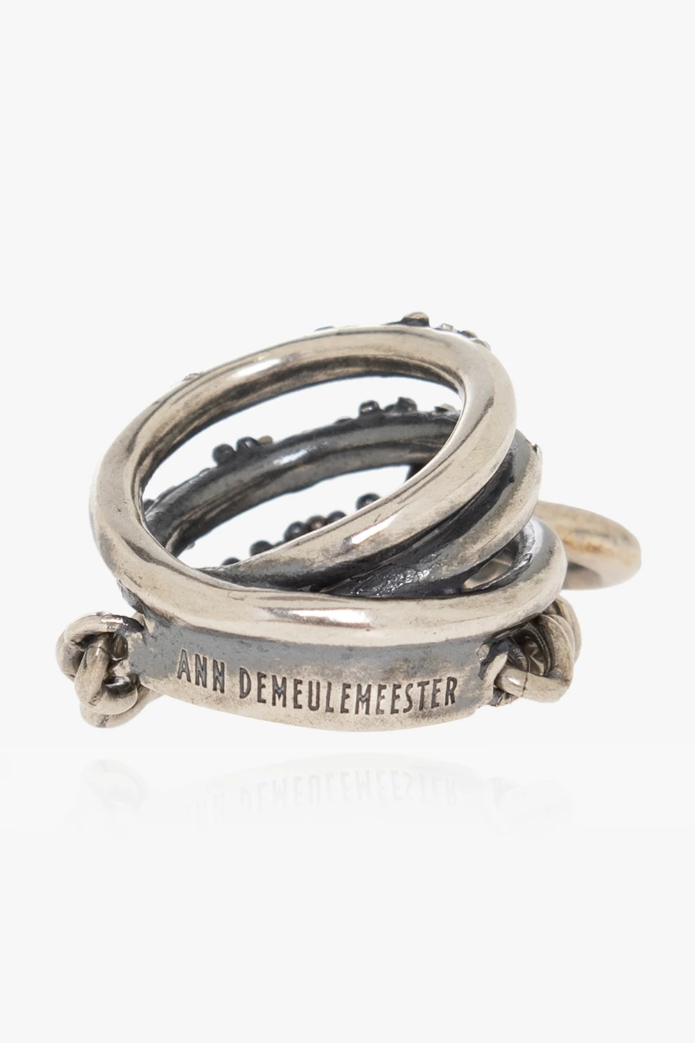 Antiqued silver-tone ‘Anika’ ring from Ann Demeulemeester. Made of Sterling silver, this item showcases a round charm, chain detailing and glossy crystals.