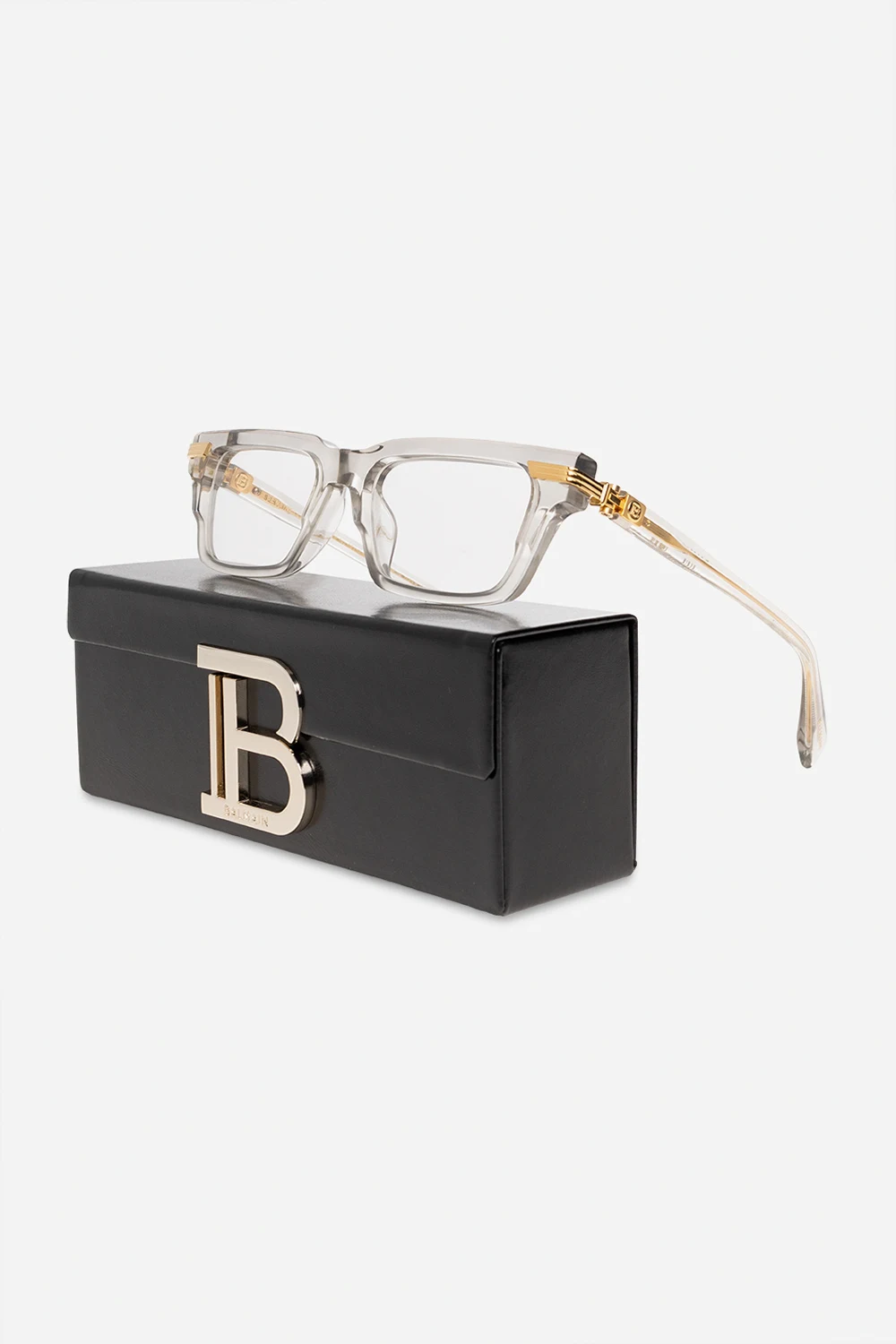 Transparent ‘Sentinelle IV’ optical glasses from Balmain. This pair has rectangular acetate lenses, decorative sculpted hinges with a monogram in gold-tone, logo-engraved tips and clear lenses. Comes with a case.
