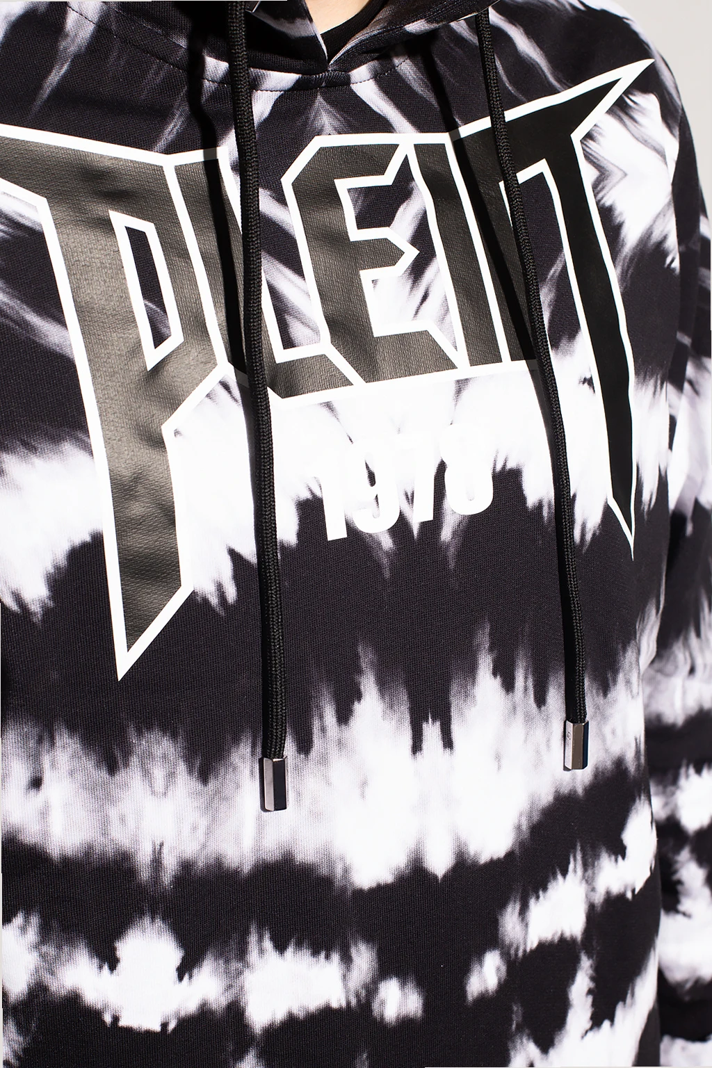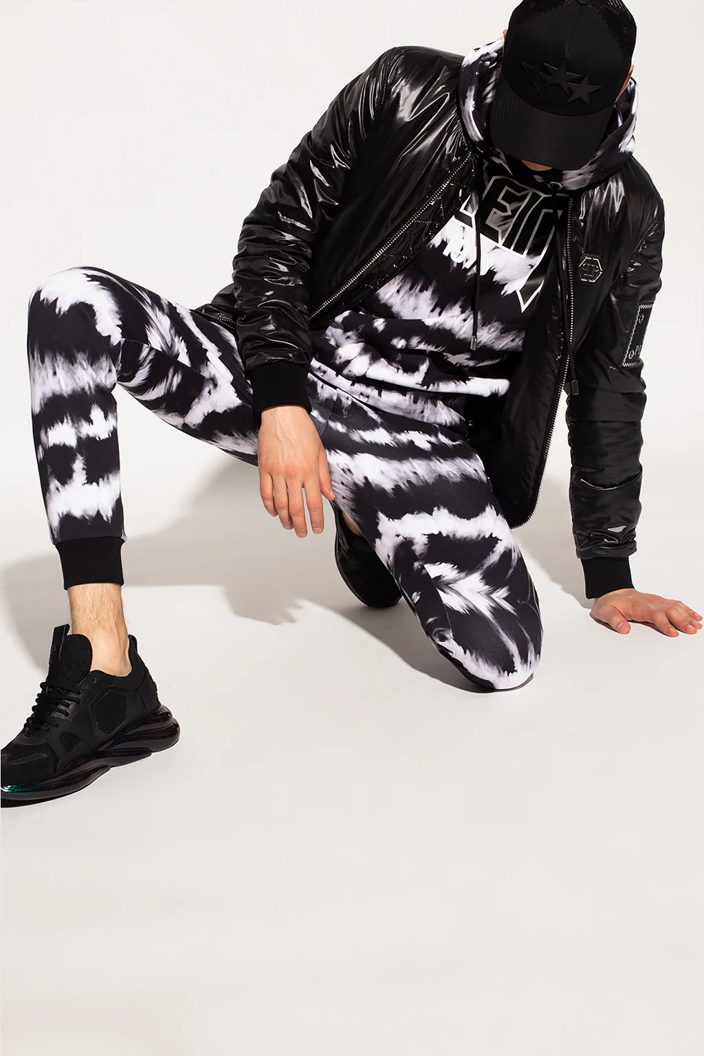 Black and white hoodie from Philipp Plein. Made of cotton, this garment features a printed logo pattern, two front slip pockets and ribbed trims at the hem and cuffs.