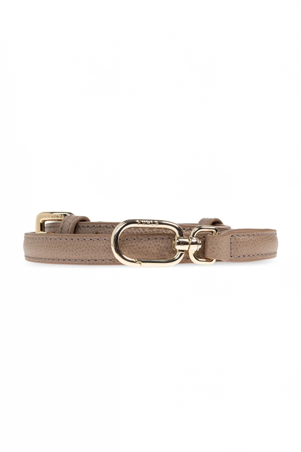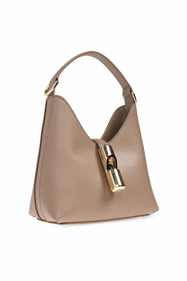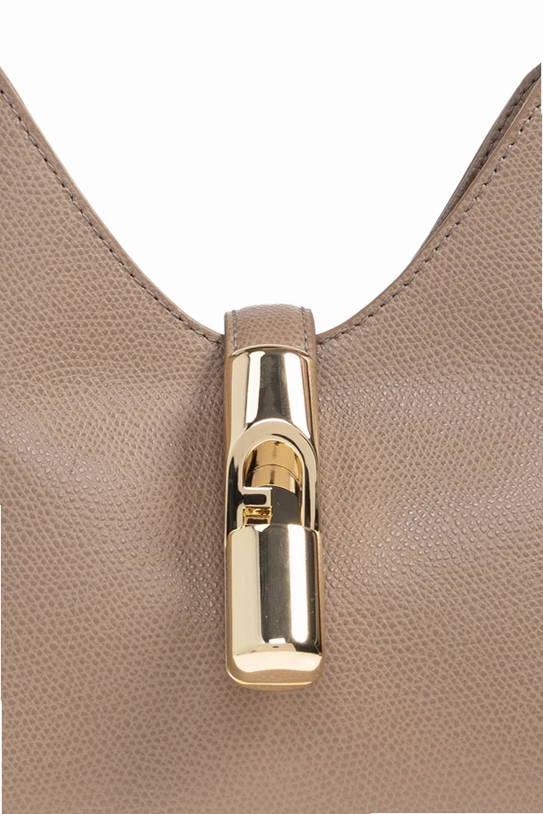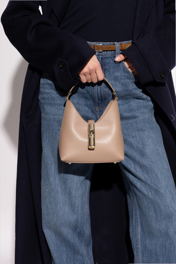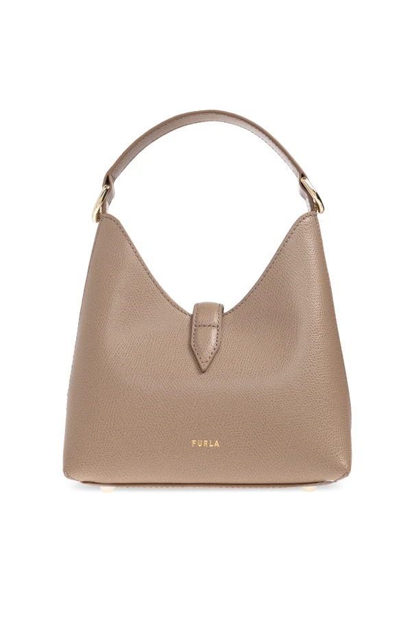 The Iride Mini Bucket Bag by Furla embodies the essence of contemporary sophistication. Crafted from exquisite, grainy natural leather with subtle embossing, this miniaturized bucket silhouette marries timeless appeal with a whisper of modern flair. Its serene beige hue radiates understated versatility, complementing any ensemble with ease. Unadorned and smooth, the exterior accentuates a minimalist sensibility, punctuated by a bold vertical gold-toned clip that distinguishes this piece from classic bucket bags. Discreet gold designer lettering on the back and an interior black label offer a refined signature touch. Gold-tone metal accents further elevate the bag’s luxurious character. Why choose this product? Premium grainy natural leather for enduring elegance Classic mini-bucket shape with modern, slender lines Signature gold vertical clasp and hardware for unique distinction Effortlessly neutral beige complements every wardrobe Impeccable Italian craftsmanship by Furla, since 1927