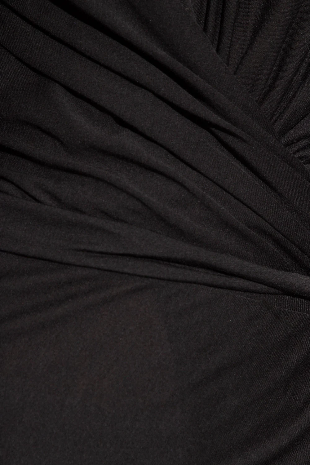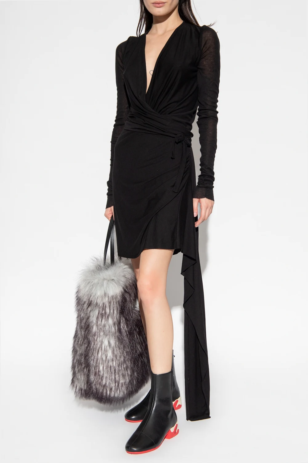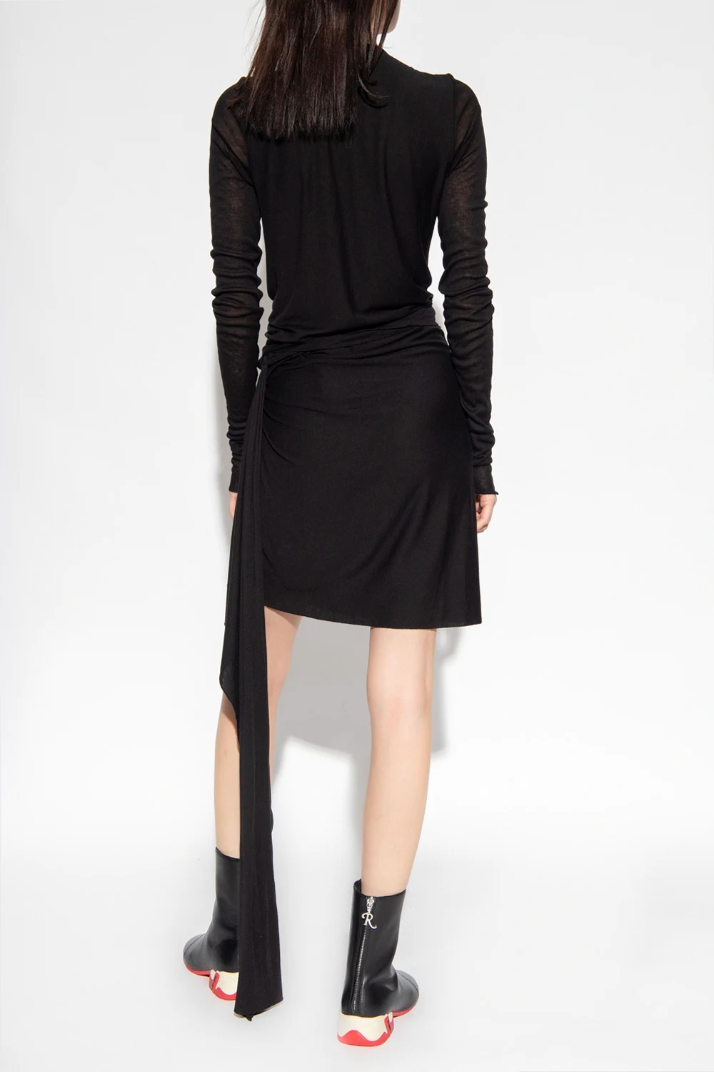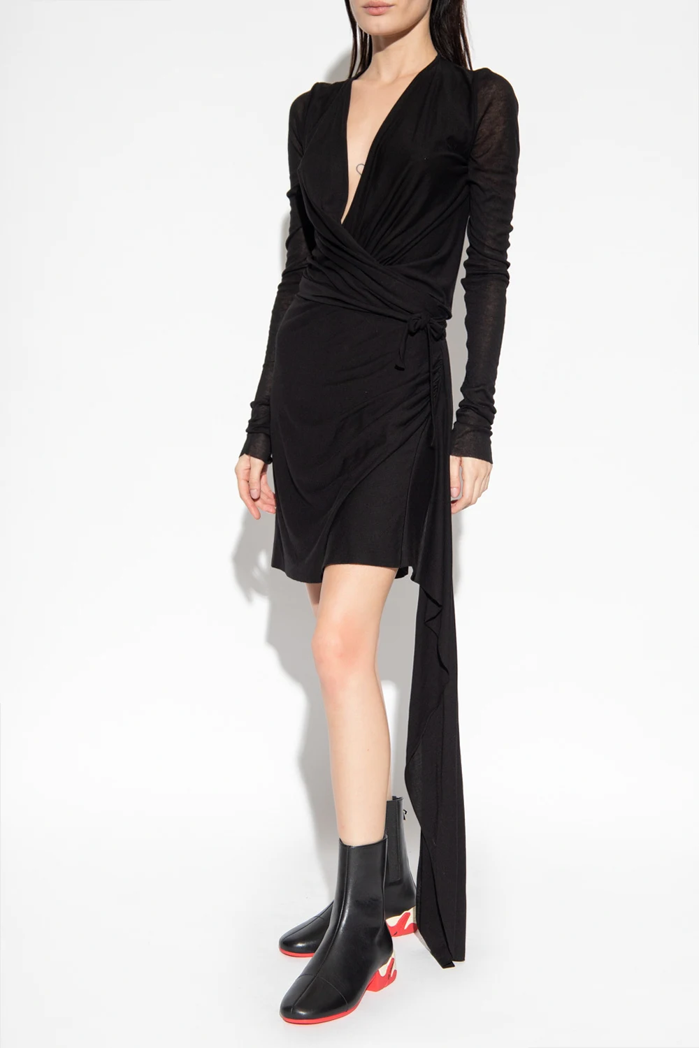 Black ‘Stevie’ asymmetric wrap-over dress with a plunging V-neck and long sleeves from Rick Owens Lilies.