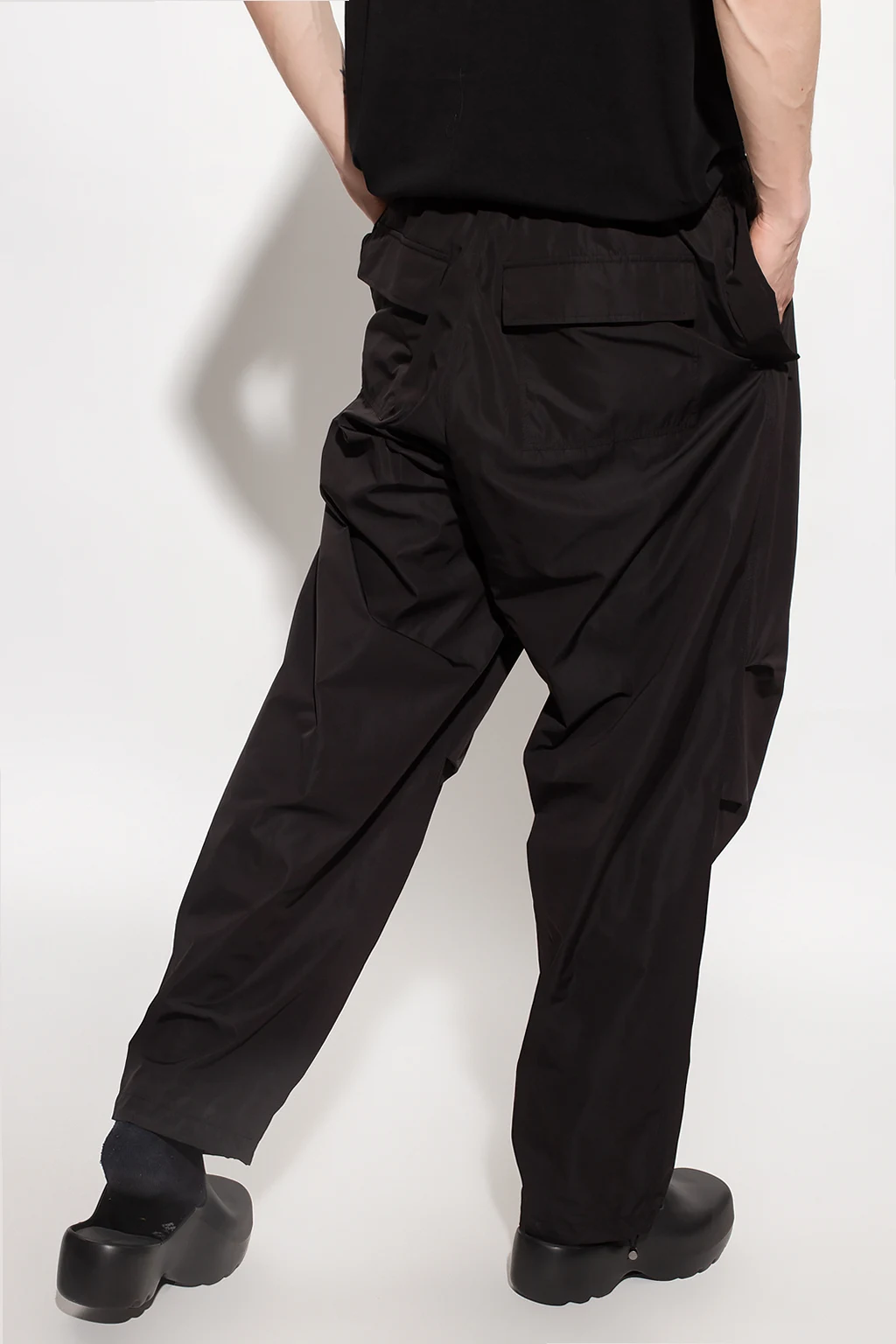 Black ‘Antico’ nylon trousers from The Row. Cut with a relaxed silhouette, this pair features a zip fly with a snap-button, a drawcord-adjustable waist and cuffs, and four snap-fastened flapped pockets (two on the front and two at the back).