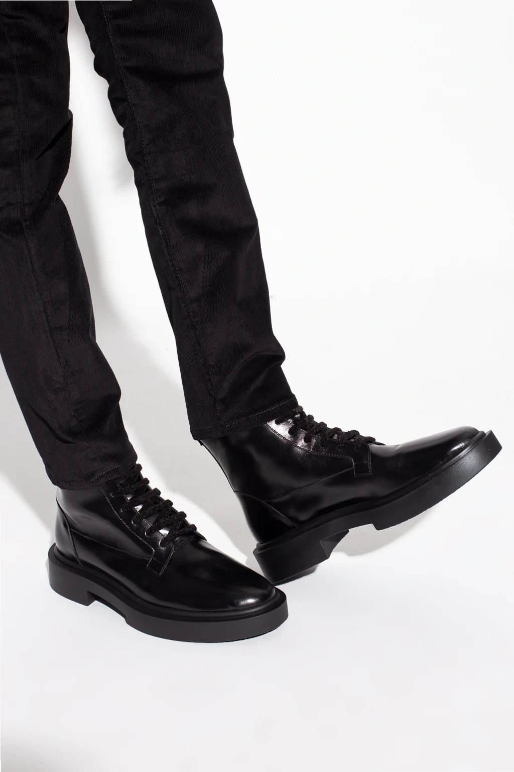Black high-top sneakers from Giuseppe Zanotti. Made of leather, this pair features decorative velour laces and a black rubber sole.
