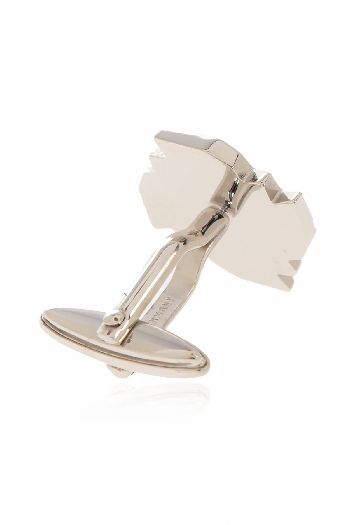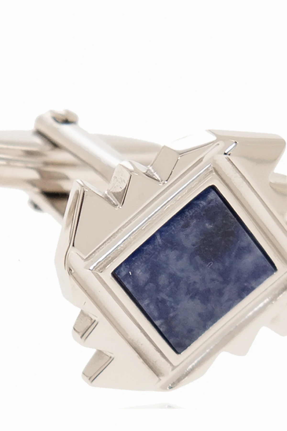 Silver-tone cufflinks with decorative cut-outs and a navy sodalite from Lanvin.