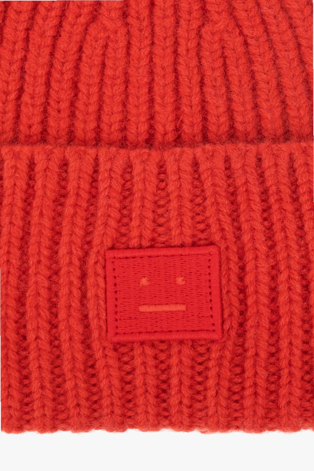 Red beanie with a logo patch from Acne Studios Kids. Made of wool.