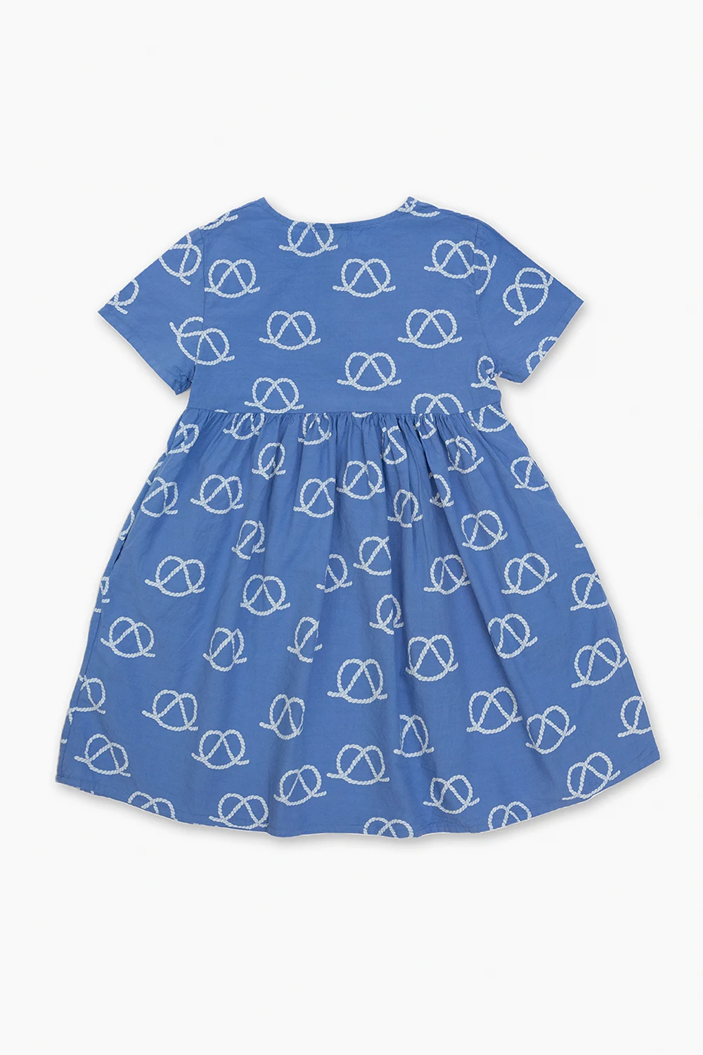 Blue dress from Bobo Choses. Made of cotton, this style features a round neck, front button fastenings and short sleeves – one is embroidered with a logo.