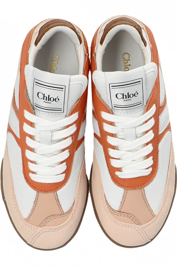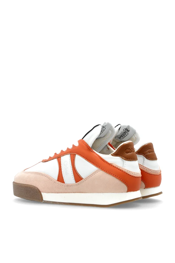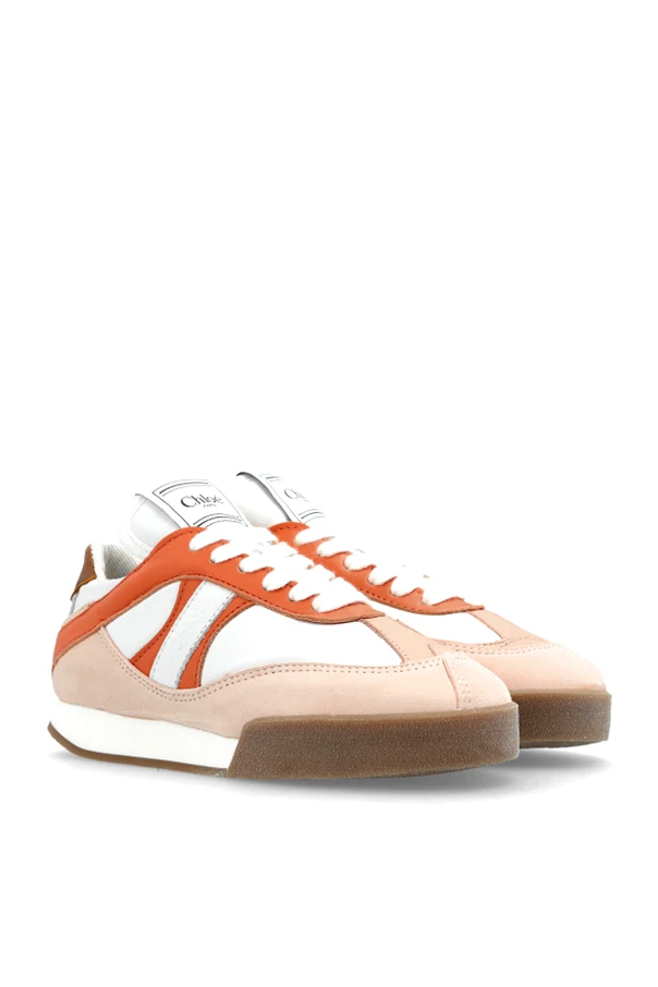 Discover the allure of Chloé Kids White Sneakers , masterfully crafted to embody refined style and modern sensibility. These classic, low-cut sneakers feature a harmonious blend of smooth white leather and textile, enriched by soft beige suede overlays and vibrant orange leather accents. The design exudes subtle sophistication, defined by the striking orange line that effortlessly elevates the shoe’s contemporary athletic character.