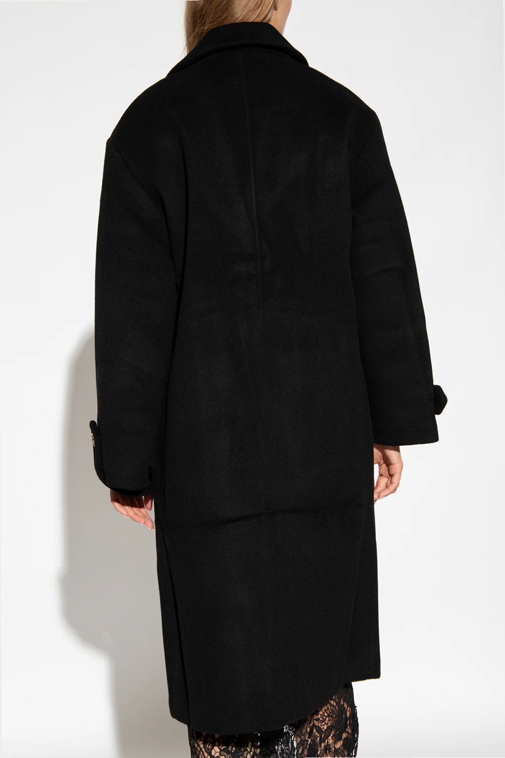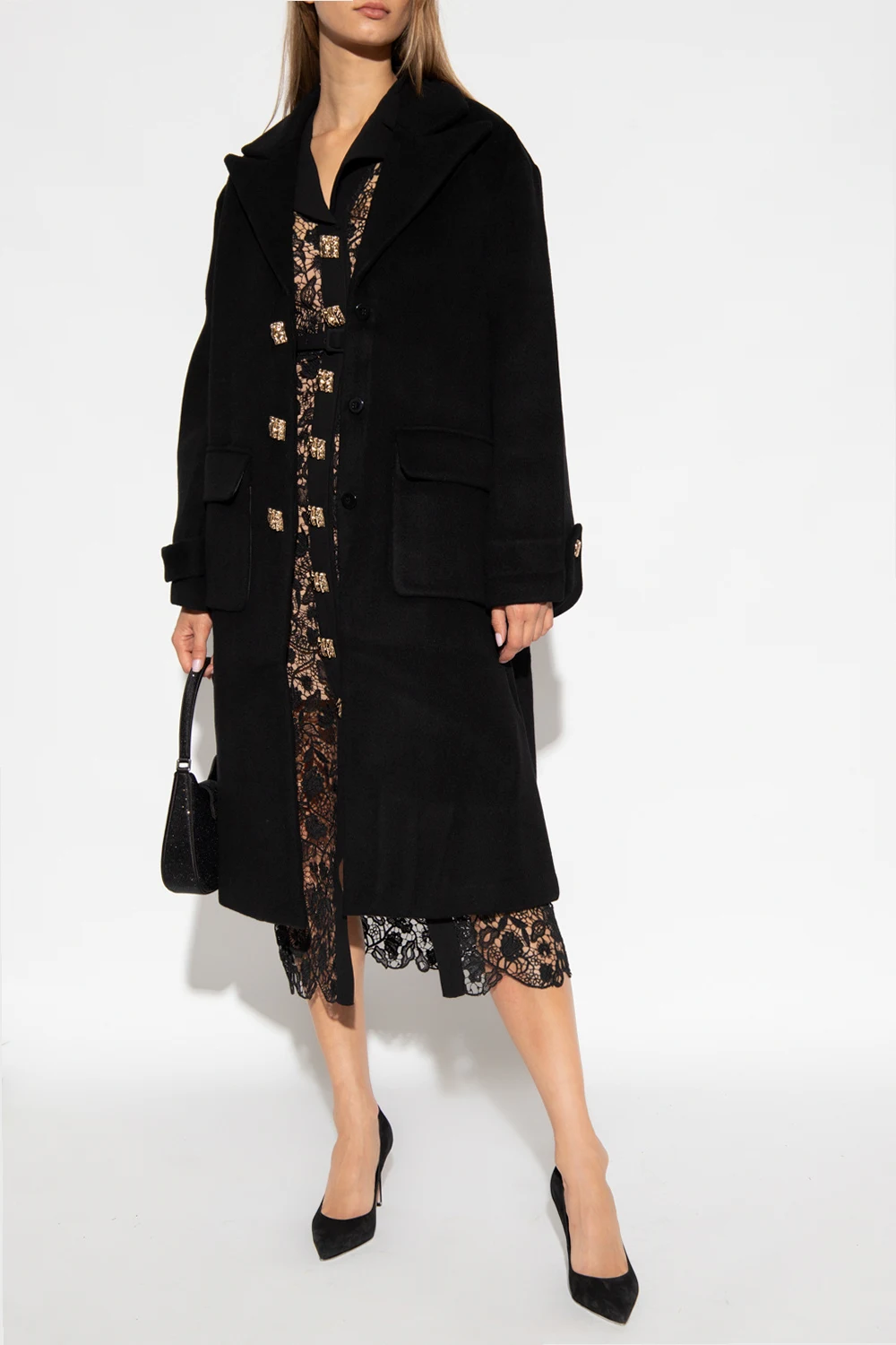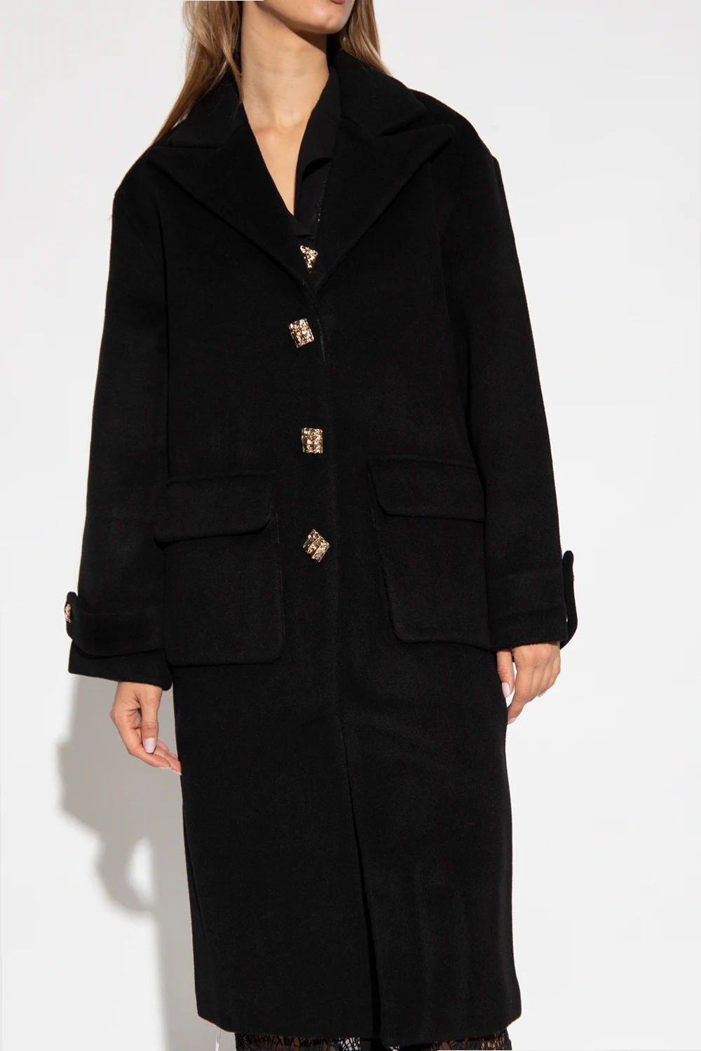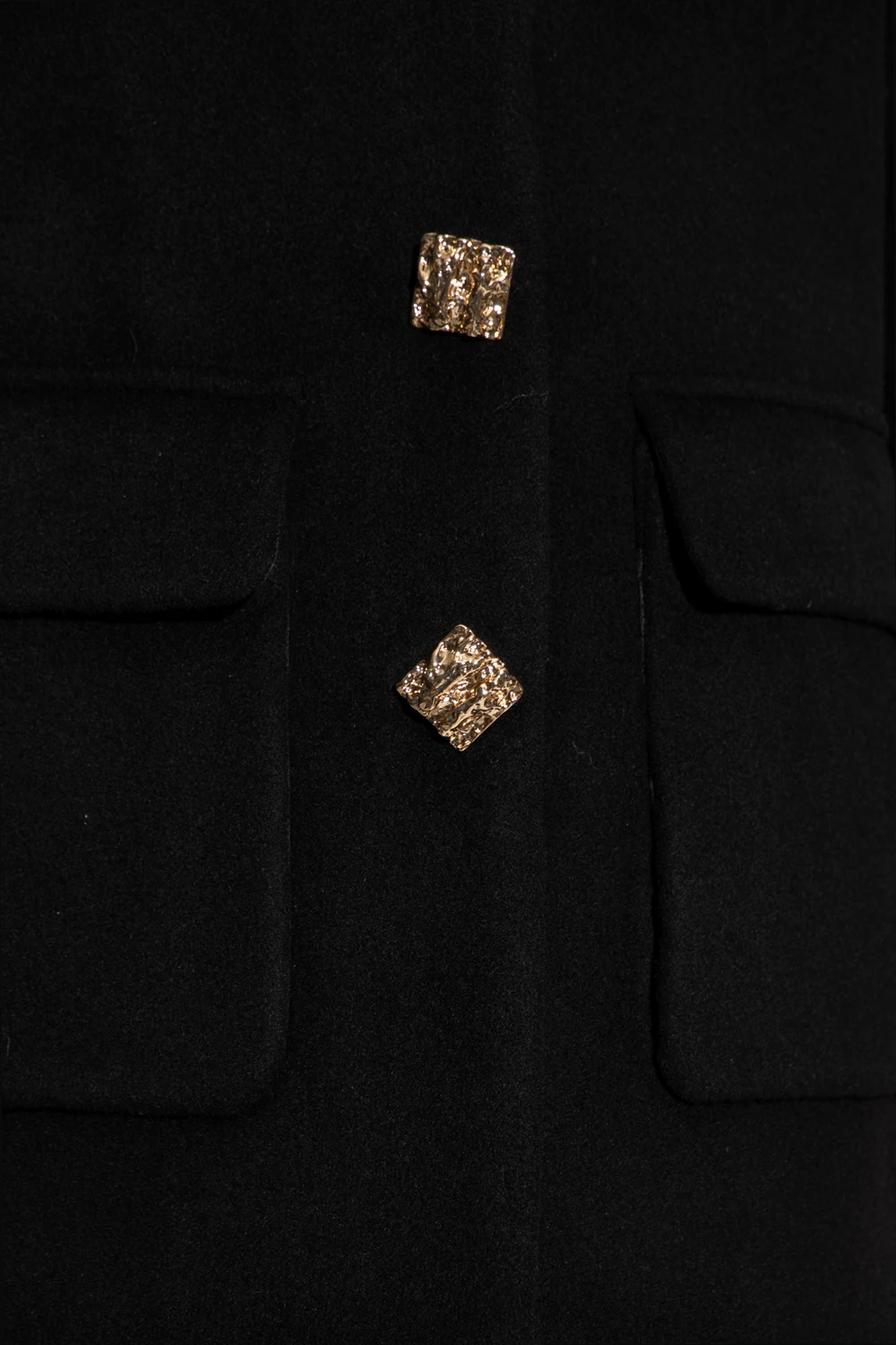 Black coat from Self-Portrait. Crafted from a wool and cashmere blend, this style features button fastenings, peak lapels, two flapped pockets, long sleeves and decorative gold-tone inserts.