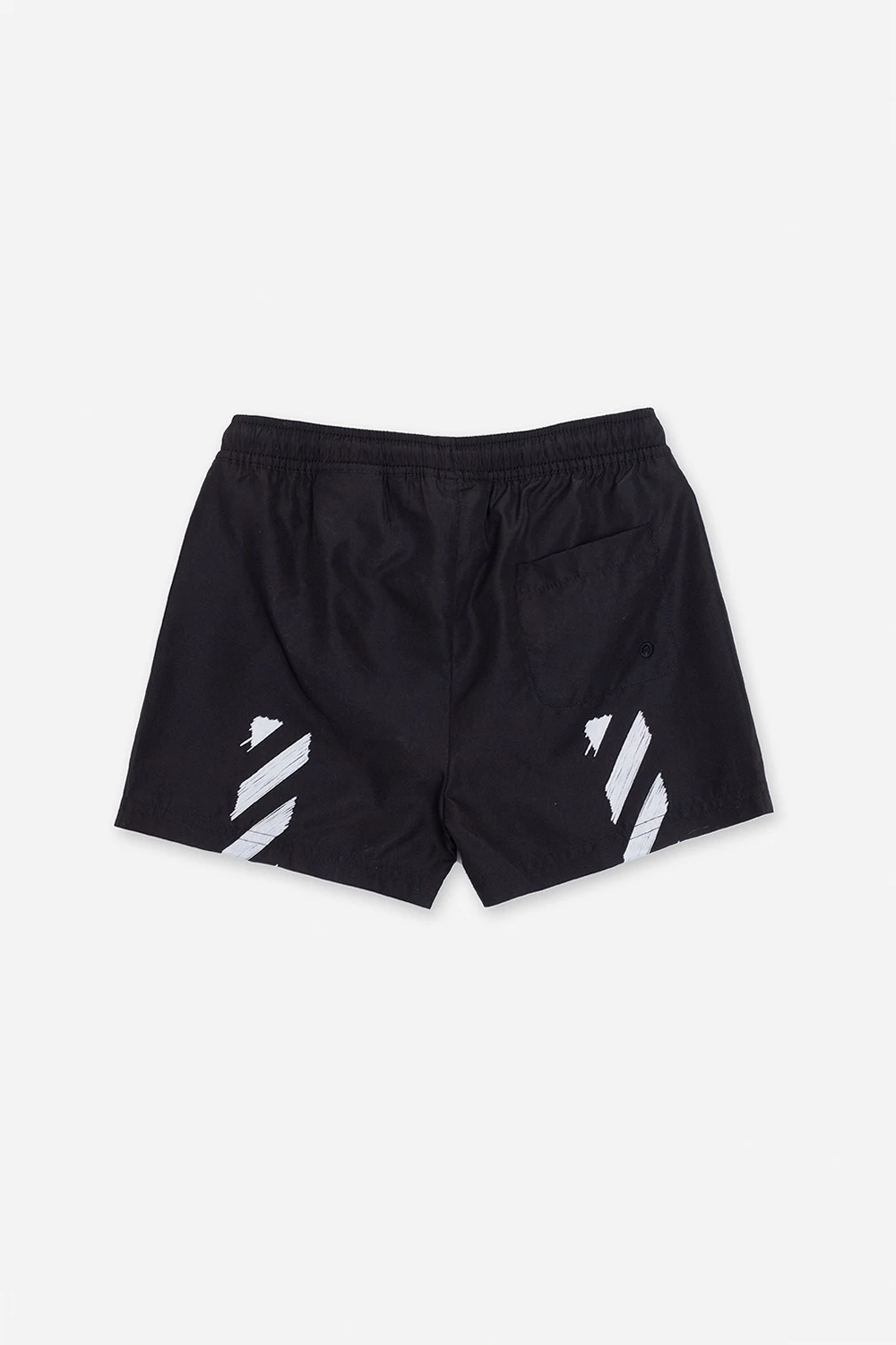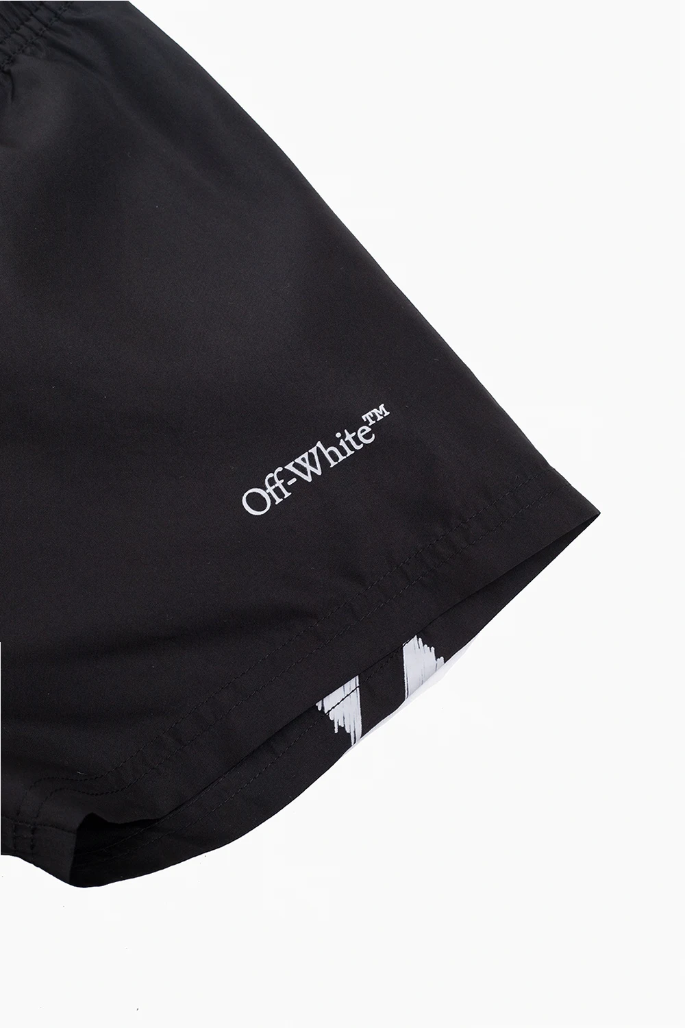 Black swimming shorts from Off-White Kids. Printed with the brand's logo in white, this pair features a drawstring waist and back pocket.