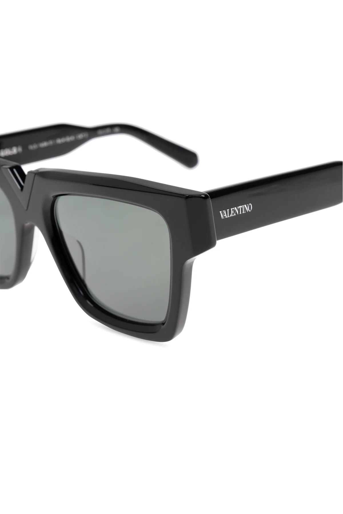 Introducing the Valentino Eyewear Sunglasses from an exclusive fashion collection, a paragon of elegance and modernity. These sunglasses boast a bold, rectangular shape adorned with thick frames, exuding a refined and contemporary allure. Crafted from high-quality acetate and titanium, these sunglasses feature a sleek, monochrome design. The predominant black hue enhances their classic sophistication, elegantly complemented by the subtle designer logo "VALENTINO" embossed on the temples, underscoring their exclusivity. These sunglasses are meticulously made in Italy, utilizing traditional techniques and equipped with UV and UVB protective lenses, ensuring both style and safety. They arrive with a luxurious black case, perfect for safeguarding your investment in style. Why Choose This Product? Exquisite Italian craftsmanship Timeless and innovative design High-quality acetate and titanium materials UV and UVB protective lenses Includes a stylish black case