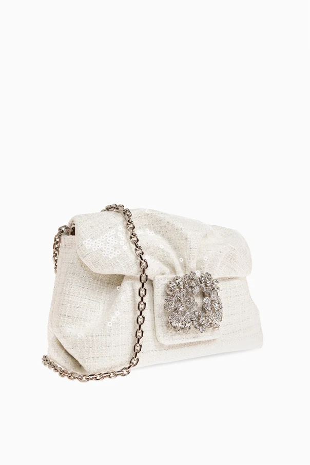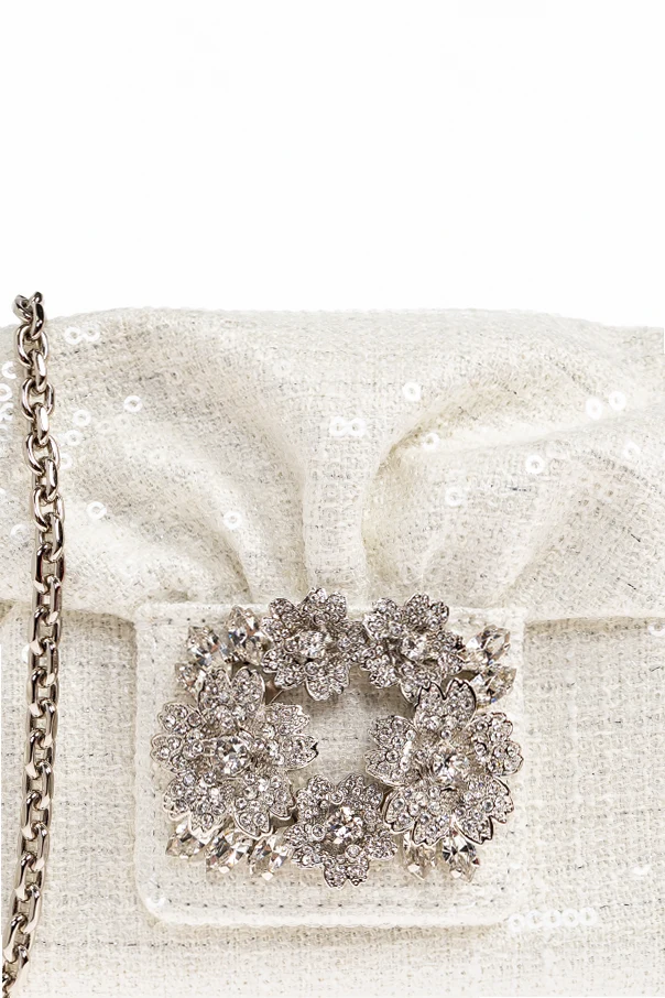 Exuding refined sophistication, the Micro Clutch by Roger Vivier enchants with its graceful micro-size and impeccable white hue. Crafted from sumptuous fabric adorned with whisper-fine sequins, this clutch radiates a subtle, opulent sheen, elevating any ensemble. The structured, rectangular silhouette is softened by gently rounded edges and a masterfully folded top flap, blending architectural precision with feminine allure. At its heart, a dazzling, ornate clasp fashioned from radiant crystals in exquisite floral motifs commands attention. This jeweled accent adds unrivaled glamour, elegantly anchoring the piece. High-quality materials, including metal, viscose, and polyester, ensure this clutch’s enduring beauty and tactile luxury. Designed for soirées and significant occasions, it is both artful and unforgettable. Why choose this product? Distinguished by its brilliant white color and sparkling sequin finish Signature crystal-embellished floral clasp for a statement detail Graceful micro size—perfect for refined gatherings Expertly crafted by Roger Vivier for lasting sophistication Outstanding blend of premium materials ensures durability and elegance