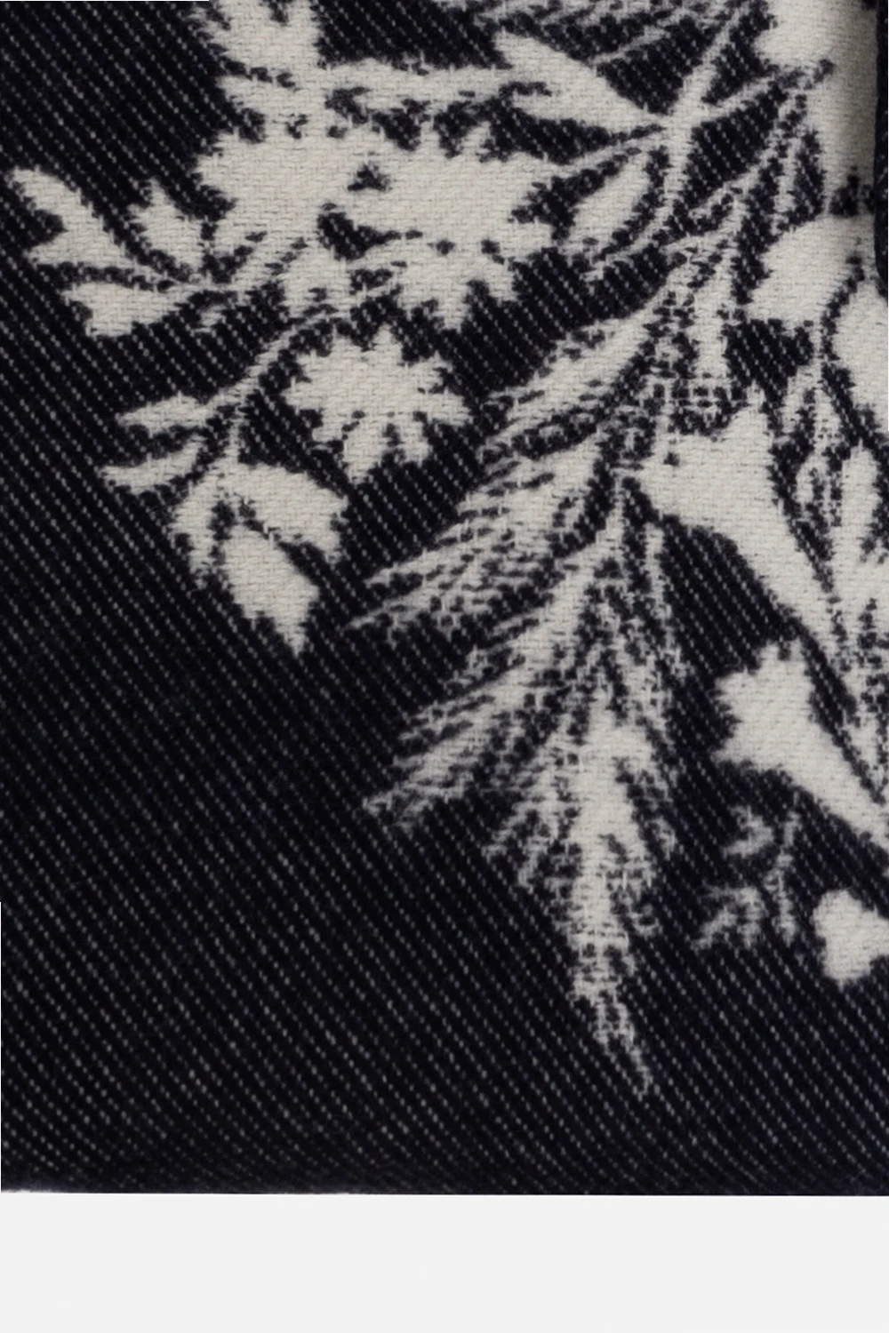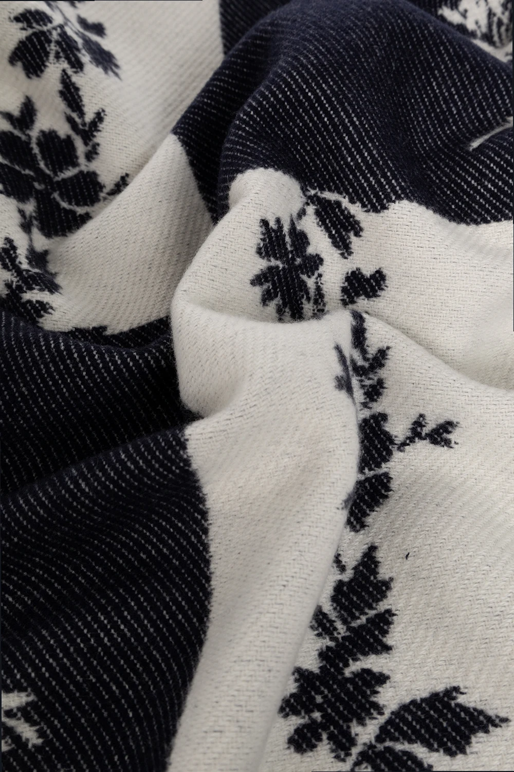 Navy blue and white blanket from Erdem. Crafted from a wool and cashmere blend, this item features a floral pattern a raw stitching on the edges.