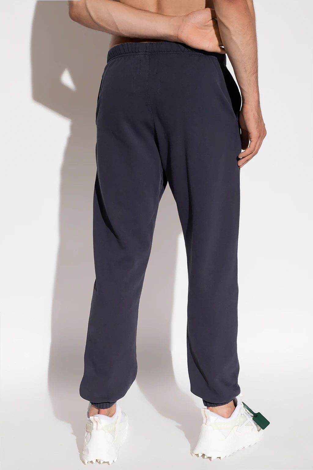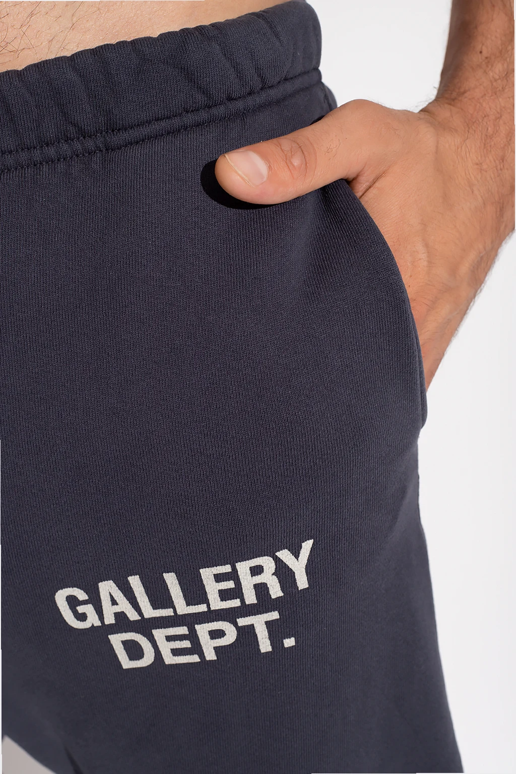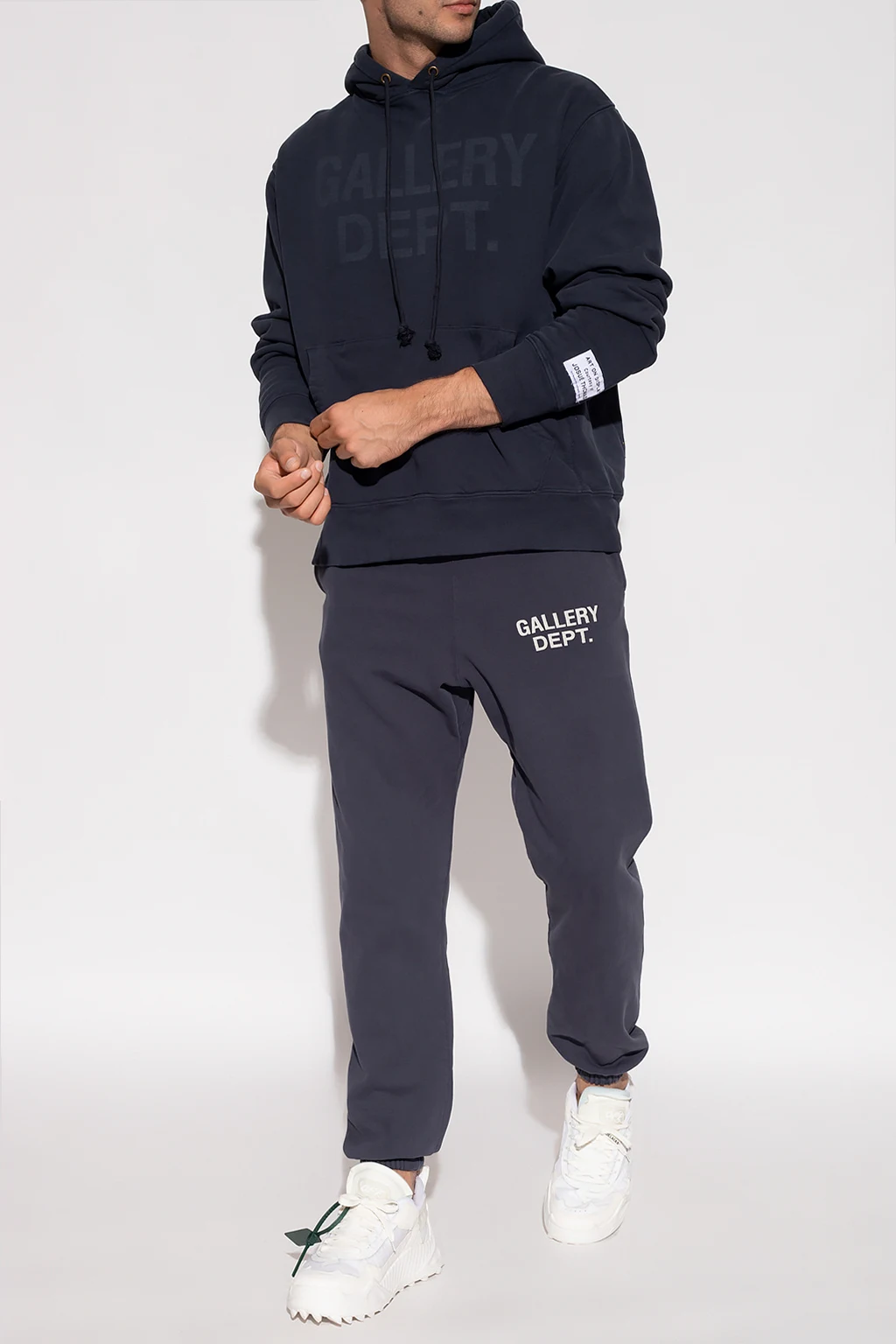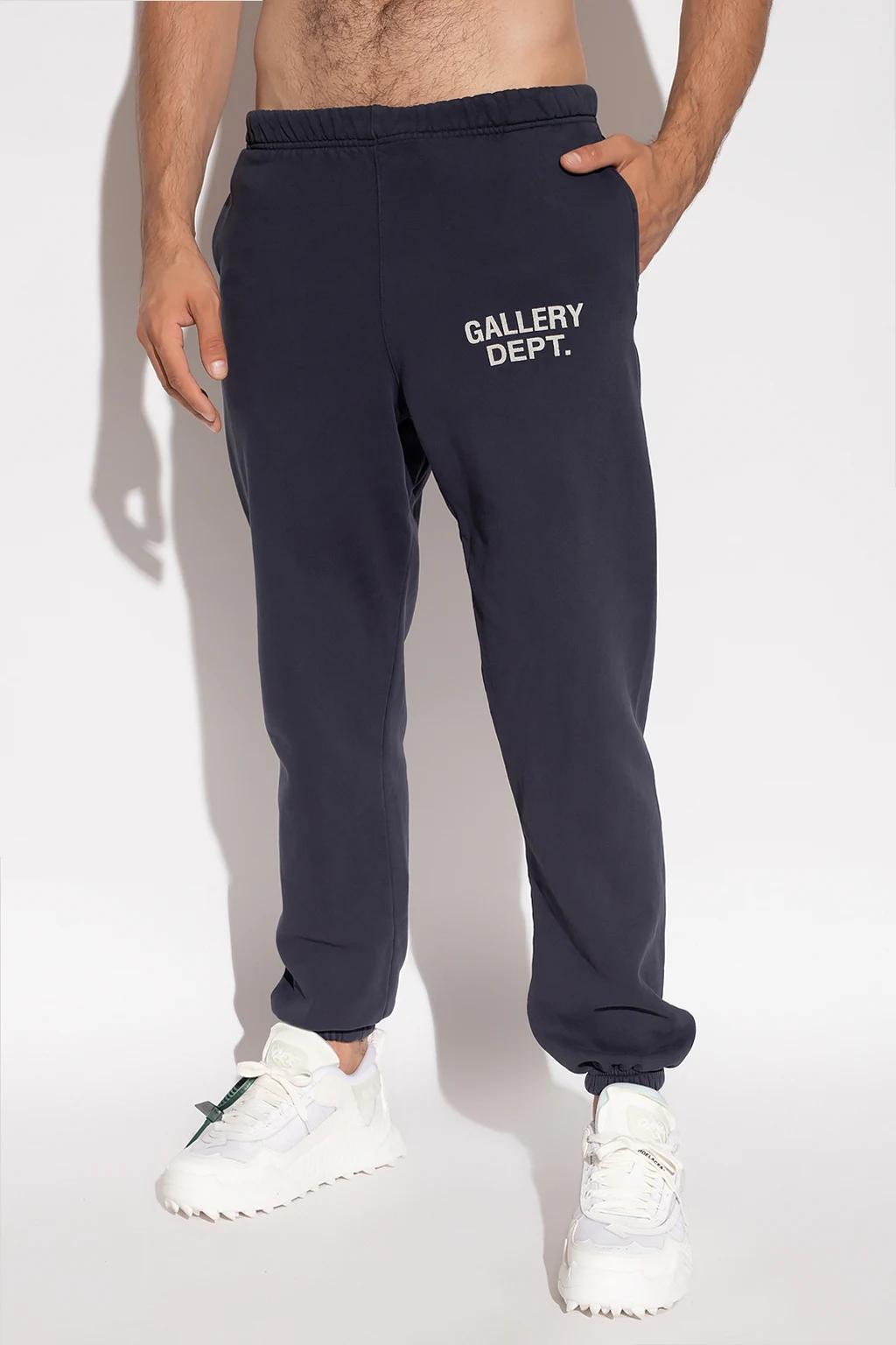Greyish navy blue sweatpants from GALLERY DEPT. Crafted from cotton, this pair features a white logo pattern for brand recognition. It is complete with a drawstring waistband, two slip pockets and elasticated cuffs.