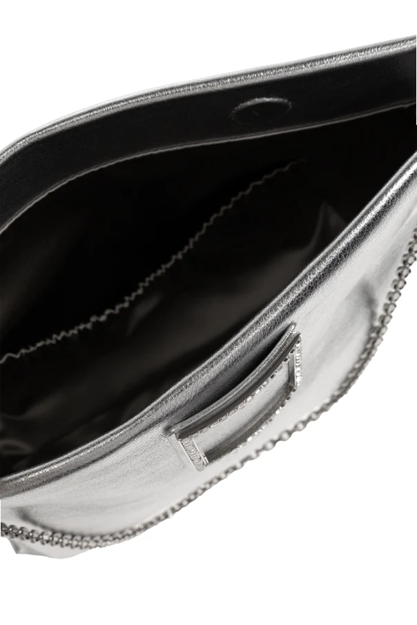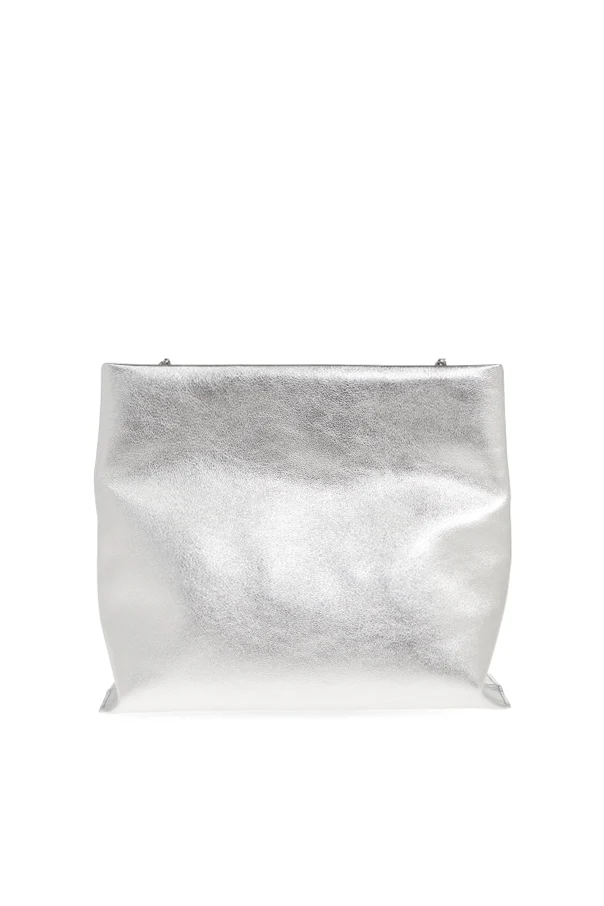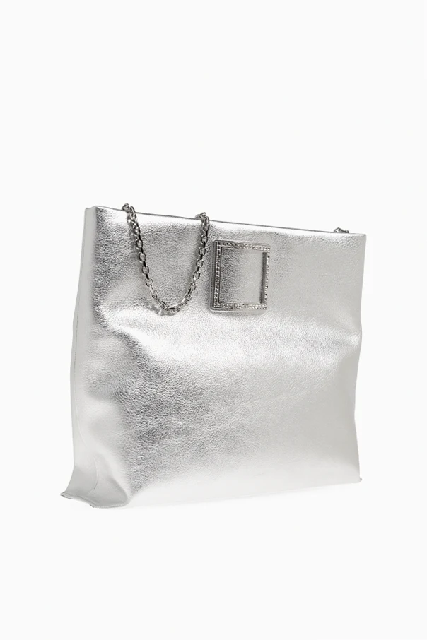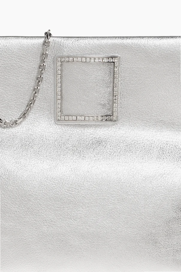 The Trompette Clutch by Roger Vivier is a sophisticated statement piece, defined by its refined rectangle silhouette and gently rounded edges. Crafted from luxurious, silver-toned leather with a distinctive metallic texture, it radiates modern opulence while maintaining a sumptuously soft feel. The smooth, uninterrupted surface accentuates its minimalist grace and provides the perfect canvas for the clutch’s iconic, square centerpiece—an elegant metal frame adorned with glistening crystals, a subtle yet dazzling hallmark of distinguished design. An exquisite silver chain allows for effortless shoulder wear, seamlessly blending versatility with chic allure. The Trompette Clutch captures the essence of modern femininity, making it an impeccable accessory for any extravagant occasion or refined evening gathering. Why choose this product? Impeccable craftsmanship using premium, silver leather Distinct decorative square with sparkling crystal detailing Minimalist elegance—unembellished surface for refined impact Subtle, detachable chain for versatile styling An exclusive Roger Vivier design, embodying timeless luxury
