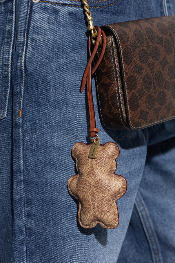 Elevate your handbag with this exquisite Teddy Bear Bag Charm from Coach, rendered in a sophisticated brown hue. Meticulously crafted from premium, leather-like material with an elegant, textured finish, this accessory showcases Coach’s heritage through its iconic, intertwined monogram motif artfully repeated across the surface. Thoughtfully designed in the charming form of a classic teddy bear, the charm features gracefully rounded ears and paws, evoking both whimsy and refinement. A polished gold-tone tag, delicately engraved with the Coach logo, subtly attests to its authentic luxury. The sleek, brown strap ensures secure and elegant attachment, making this charm an unmistakable statement of timeless American craftsmanship. Why choose this product? Distinctive, monogrammed bear silhouette exuding playful sophistication Expertly finished precision stitching for enduring elegance Signature Coach branding for unmistakable authenticity Versatile accessory that seamlessly complements any exclusive collection Perfect gift for connoisseurs of refined, iconic design