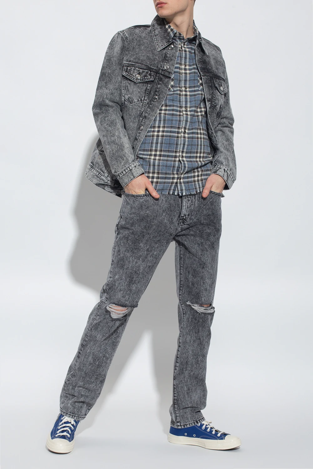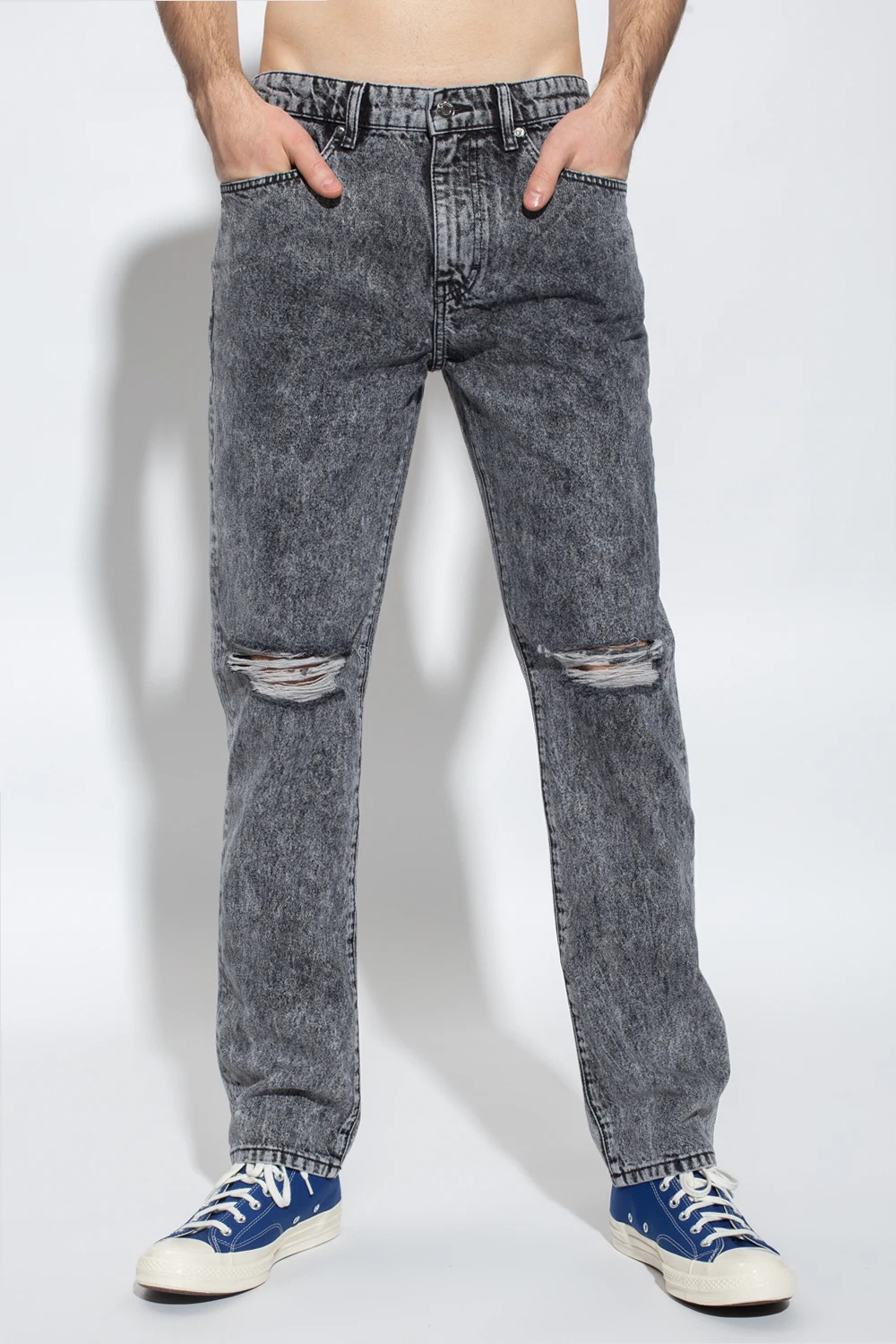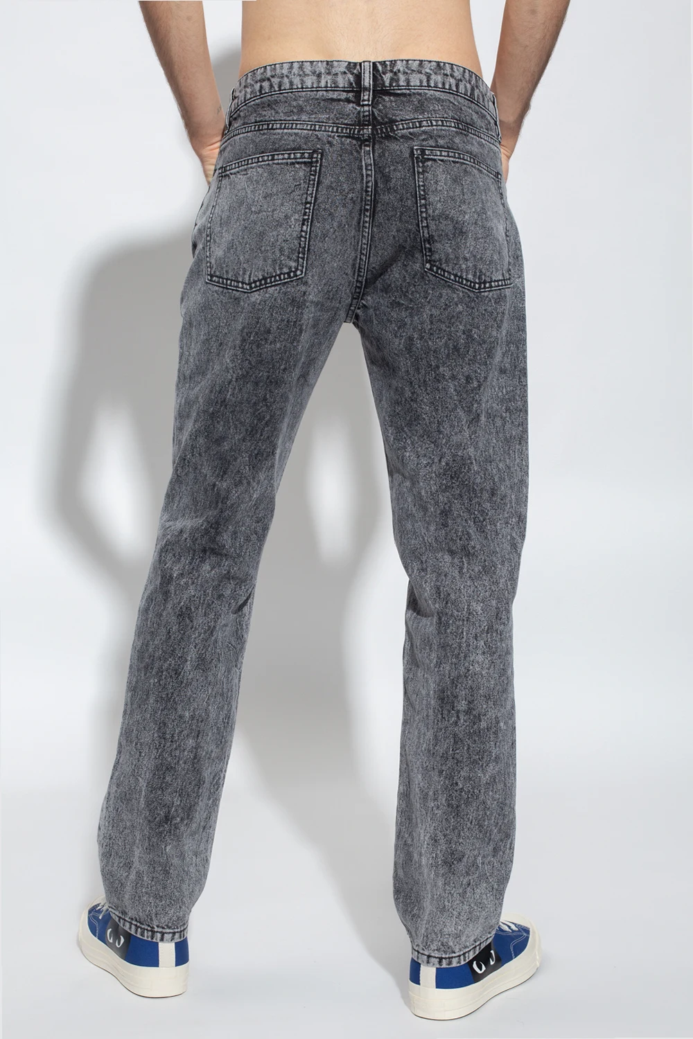 Grey jeans from Iro. Falling with straight legs, this pair features a zip fly with a button, classic five pockets and distressed detailing,
